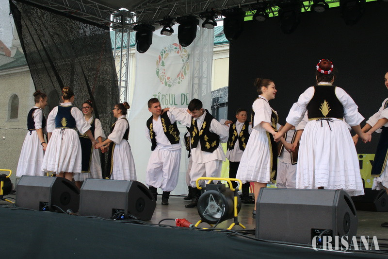 În afara concursului, vineri seara, pe scena Teatrului Regina Maria, au evoluat copiii din grupul „Moştenitorii” de la Şcoala din Meziad, precum şi cei din Asociaţia Ansamblul Crişana.