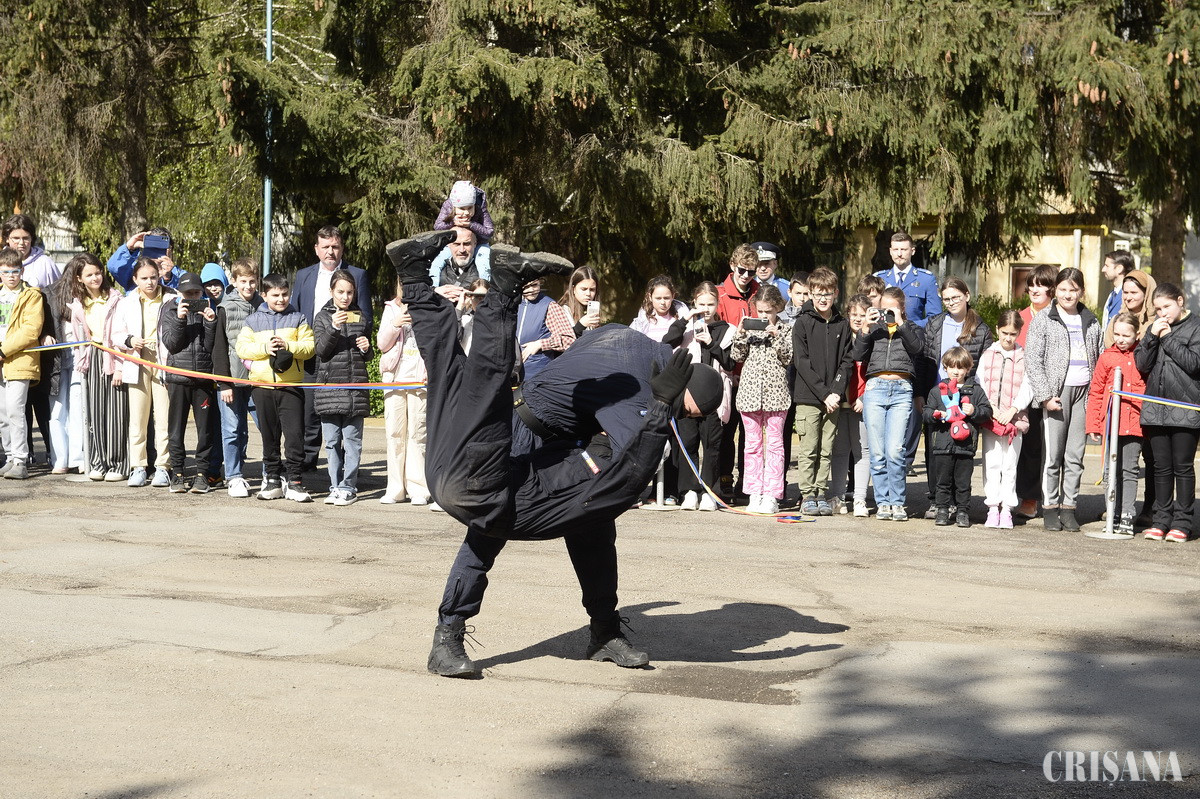 Curtea Inspectoratului Județean de Jandarmi Bihor s-a umplut de copii, ieri dimineață, cei mici participând la un eveniment dedicat lor, în special, cu ocazia Zilei Jandarmeriei Române.