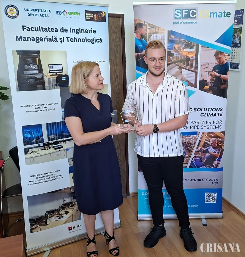 Studenții din anul I, de la Facultatea de Inginerie Managerială și Tehnologică, care au obținut rezultate academice remarcabile, au fost premiați luni, 21 iulie, în cadrul programului „Supporting Future Careers”, derulat de SFC Climate.
