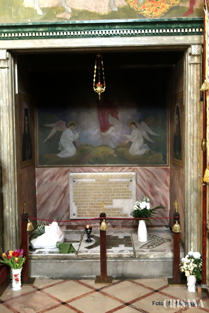 În numele tuturor participanților, ing. Pavel Mercea, președintele executiv al Filialei Bihor a Uniunii Vatra Românească, a depus un buchet de flori pe lespedea criptei în care se află mormântul ierarhului ctitor al Episcopiei Ortodoxe a Oradiei.