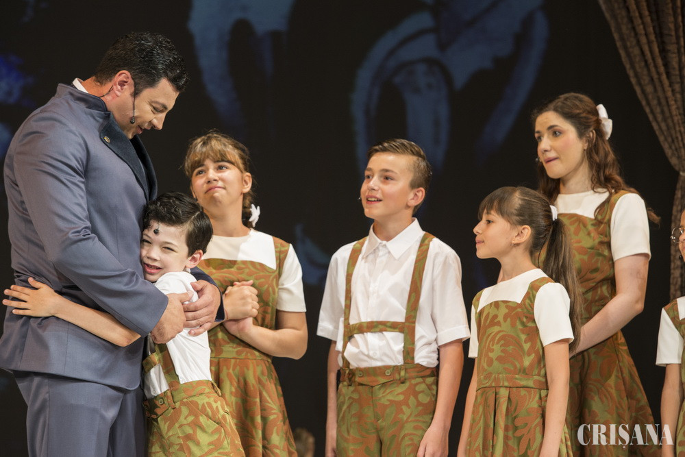 După ce filmul cu titlul omonim, lansat la Hollywood în 1966, a cucerit publicul din întreaga lume, povestea din Sunetul Muzicii nu mai are nevoie de nicio prezentare. Generaţii întregi au crescut fredonând melodiile celebre din coloana sonoră, iar fetele s-au visat, fără îndoială, Maria, o Cenuşăreasă modernă care, prin puterea muzicii şi a iubirii, cucereşte inimile a şapte copii şi inima tatălui lor, ajungând, din guvernantă, baroneasă, soţie şi mamă. Spectacolul a fost montat la Oradea de regizorul de operă Mihaela Bogdan, care a pariat în rolurile principale pe Adela Lazăr, Sorin Ionescu şi pe ... copii. Căci ei, copiii, sunt, fără îndoială, cheia succesului acestui spectacol. Regizoarea a urcat pe scenă două distribuţii a câte şase copii, cu vârste între 5 şi 12 ani. Copii care, dacă au mai luat vreodată contact cu scena, cu siguranţă nu au făcut-o într-un spectacol de teatru profesionist, a cărui durată se întinde pe parcursul a trei ore. Copii care au cântat, au dansat, au vorbit, au jucat şi s-au jucat, aşa cum numai un copil poate să o facă. Cu o emoţionantă sinceritate. Se vede şi se simte că aceşti copii nu sunt profesionişti, nu au în spate cursuri şi studii de actorie, sau, cel puţin, nu suficiente pentru a-şi pierde naivitatea, emoţia, candoarea, onestitatea, pe care nu prea mai avem şanse să le vedem la teatru. Şi acesta a fost asul din mânecă, aceasta a fost cartea câştigătoare, a unui pariu greu, foarte greu de dus, atât din partea regizoarei, cât şi din partea actorilor care au fost, în scenă şi în culise, mereu, în contact cu acest „element uman” vivace şi imprevizibil. Tot ei, copiii, au demonstrat că nu există stângăcie, eroare, uitare, sau bâlbă, atunci când tot ce faci şi spui este adevărat, este cu şi din bucurie. Şi au mai demonstrat că inocenţa te face intangibil. Ori exact acestea sunt mesajele pe care Sunetul Muzicii (cartea, filmul şi spectacolul montat de sute de ori pe sute de scene) vrea să le transmită. Minutele nesfârşite de aplauze în picioare au fost, în primul şi în primul rând, ale copiilor. La Oradea nu s-a aplaudat vreo performanţă incredibilă, la fel cum nu s-a aplaudat un spectacol impecabil. Şi nici nu cred că asta a fost ţinta. La Oradea, într-un transfer emoţional scenă-sală aproape palpabil, a fost aplaudată Bucuria la scenă deschisă. Şi cei care au livrat-o sunt: Anabela Tonţ, Anastasia Feher, Anastasia Vicoveanu, Raisa Boldiș, Rebeca Rusu, Antonia Corchiș, Filip Ionescu, Iacob Lakatoș, Raisa Vesa, Gia Cordea, Filip Mut, Alexandru Faur-Balint.
