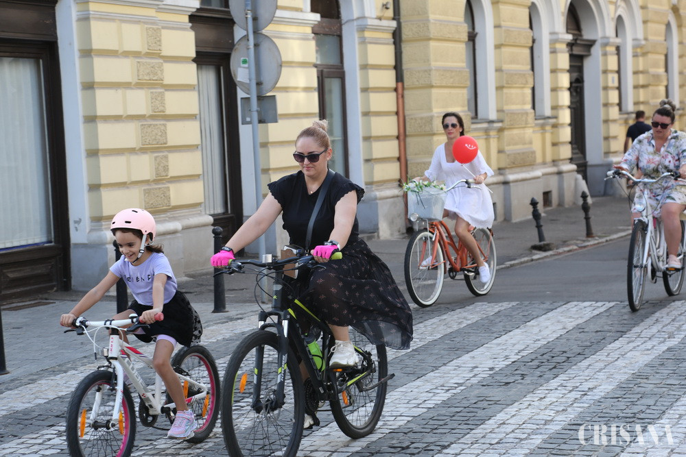 Reprezentantele sexului frumos au pedalat apoi prin Oradea, pe următorul traseu: Bulevardul Dacia, Bdul Decebal, str. Sf. Apostol Andrei, str. Menumorut, str. Ep. Roman Ciorogariu, Parcul Traian, str. Andrei Șaguna, iar oprirea a fost la Casa Darvas La Roche.