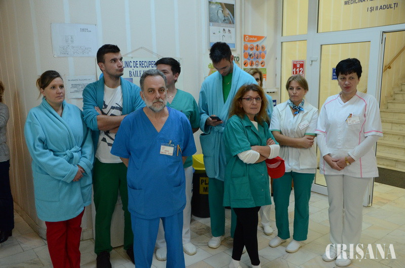 Şi medicii din Bihor au fost ieri în grevă. Chiar dacă la cele două spitale mari din Oradea nu s-a protestat, la Spitalul Clinic de Recuperare din Băile Felix nu s-au făcut tratamente. Totuşi, bolnavii care au venit din ţară au fost internaţi, infirmierele din saloane şi-au făcut treaba, iar cantina a funcţionat normal.