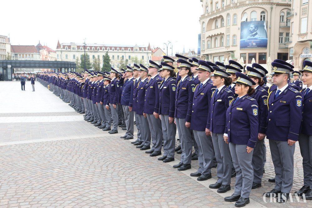 O mare de uniforme albastre, multe zâmbete și relaxare vineri, în Piața Unirii din Oradea. 291 de absolvenți ai Şcolii de Pregătire a Agenţilor Poliţiei de Frontieră „Avram Iancu” au depus Jurământul de Credinţă. La eveniment au participat adjunctul inspectorului general al Poliției de Frontieră Române, comisar-șef de poliție Tatiana Ivan, prefectul județului Bihor Ioan Mihaiu, vicepreședintele Biroului Executiv Central al Corpului Național al Polițiștilor, comisar șef de poliție Liviu Ghețău, oficialități locale precum și oaspeți din Republica Moldova și Ungaria.