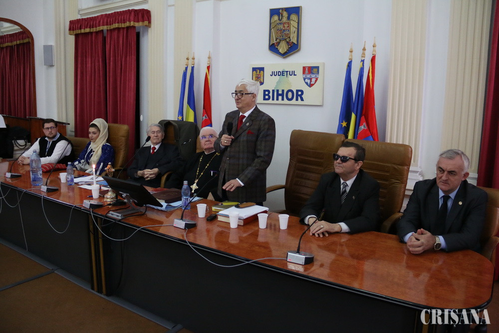 În continuare, tinerii artiști Alexandru Carțiș și Bianca Popa au intonat Imnul Național al României, după care a luat cuvântul prof. Teodor David, Senator al mișcării unioniste Sfatul Țării 2 din Republica Moldova, unul dintre organizatorii evenimentului, alături de gen.lt. Lazăr Cârjan, prof. Doina Bunea, copreședintele Fundației Prietenia Basarabia și Ioan Chivari, prim vicepreşedintele Uniunii Vatra Românească Bihor.