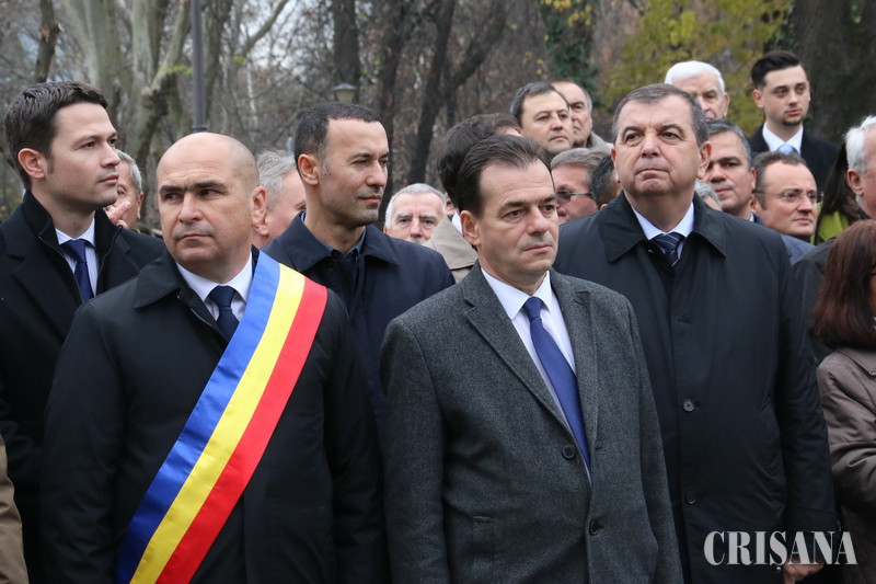 Inclusă de Primăria Oradea în programul dedicat Centenarului Marii Uniri, dezvelirea statuii lui Ion I.C. Brătianu a avut loc ieri, în parcul cu acelaşi nume, în prezenţa a câteva sute de persoane. Mare parte dintre cei prezenţi au fost liberali, grupul fiind condus de preşedintele PNL, Ludovic Orban. De altfel, pentru a marca acest eveniment, şedinţa Biroului Permanent Naţional al PNL a avut loc ieri la Oradea. De asemenea, la eveniment au fost prezenţi prefectul Ioan Mihaiu, primarul Ilie Bolojan şi viceprimarii Florin Birta şi Mircea Mălan, parlamentarii liberali bihoreni, episcopul ortodox al Oradiei Sofronie Drincec şi cel greco-catolic, Virgil Bercea, şefi de instituţii deconcentrate, dar şi academicienii Nicolae Noica şi Mihai Şora. Acesta din urmă, în vârstă de 101 ani, a ţinut să fie de faţă la dezvelirea statuii marelui om politic care s-a aflat în fruntea Guvernului României în momentul înfăptuirii Marii Uniri. Din partea Consiliului Judeţean Bihor au fost prezenţi doar consilierii liberali. Ceremonia a debutat la ora 13.00, cu intonarea Imnului de stat al României, după care a fost dezvelită statuia lui Ionel Brătianu. Sarcina i-a revenit sculptorului Radu Ciobanu, cel care a câștigat concursul pentru realizarea statuii, organizat de municipalitate în anul 2015. A urmat slujba de sfinţire, săvârşită de PS Sofronie Drincec. Despre importanţa implicării lui Ionel Brătianu în realizarea Marii Unirii, dar și despre motivele pentru care românii şi, implicit, orădenii, trebuie să-i fie recunoscători a vorbit primarul Ilie Bolojan. „Marcăm azi personalitatea unuia dintre cei mai mari oameni politici pe care i-a dat țara noastră: Ion I.C. Brătianu. Alături de alți câțiva oameni politici de seamă și alături de armata română, acesta a avut un rol major la ceea ce este România astăzi și la faptul că Oradea, Aradul, Timișoara și celelalte orașe sunt astăzi în România. Era o obligație din partea noastră ca oraș să amplasăm această statuie, iar în anii următori, când pe parcursul a doi ani vom marca și în Oradea Centenarul Marii Uniri, ne propunem ca, pe lângă cele 100 de proiecte de investiții, să mai amplasăm câteva statui în semn de respect pentru oameni care au făcut lucruri importante pentru România și pentru Oradea”, a afirmat Bolojan, precizând că a fost aleasă ziua de 24 noiembrie pentru acest eveniment pentru că „azi se împlinesc 90 de ani de la decesul său, la 63 de ani, în timp ce servea România ca prim-ministru, încheind o carieră care şi-a pus amprenta asupra a ceea ce este astăzi ţara noastră”. În discursul său, primarul Oradiei a menţionat că Ion I.C. Brătianu a fost un model de demnitate, iar românii merită să-i respecte pe atât pe Brătianu, cât şi pe Iuliu Maniu, Regele Ferdinand, Regina Maria şi pe toţi generalii Armatei Române.