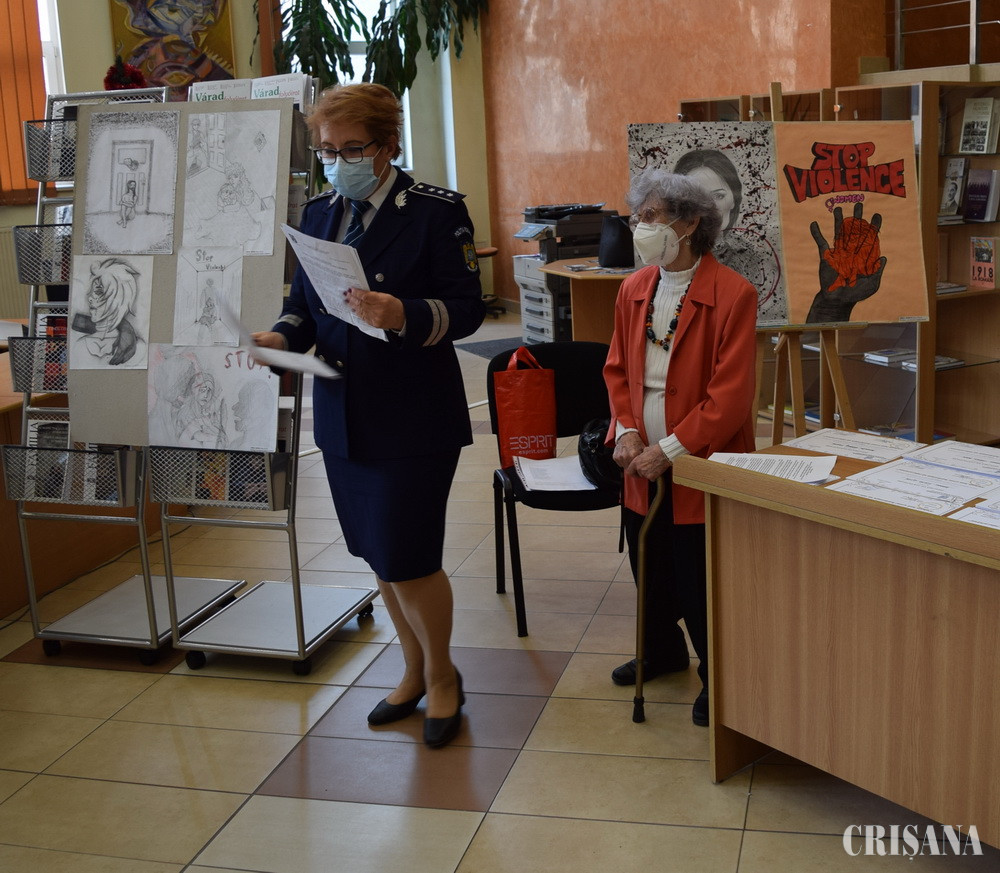 Biblioteca Județeană „Gheorghe Șincai” din Oradea, a fost joi, 9 decembrie, gazda lansării expoziției de desene și mesaje preventive realizate de comunitatea locală, în cadrul concursului de mesaje de încurajare și susținere pentru victimele violenței domestice „Violența lasă urme! Îndrăznește să ridici privirea!”, derulat de polițiștii Compartimentului de Analiză și Prevenire a Criminalității din cadrul Inspectoratului de Poliţie Judeţean Bihor, împreună cu reprezentanții Fundației „Lampas”, Direcția Generală de Asistență Socială și Protecția Copilului Bihor în colaborare cu Fundaţia „People to People”.