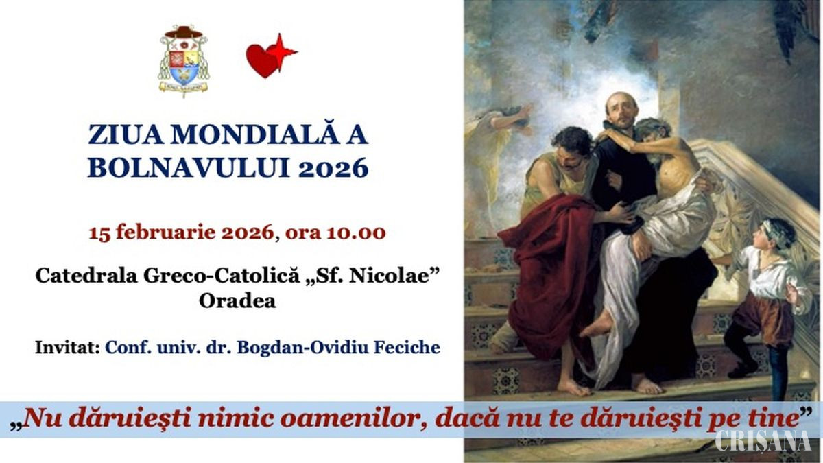Asociația „Medicii Catolici”, în colaborare cu Episcopia Română Unită cu Roma, Greco-Catolică de Oradea, invită cadrele medicale, bolnavii, aparținătorii și credincioșii, duminică, 15 februarie, la Ziua Mondială a Bolnavului, care va avea loc în Catedrala Greco-Catolică „Sfântul Nicolae” din Oradea, începând cu ora 10.00.