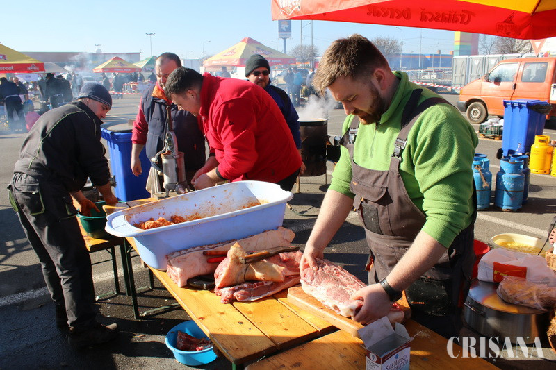 Festivalul-concurs „D’ale porcului”, organizat de Consiliul Judeţean Bihor - Centrul Judeţean pentru Conservarea şi Promovarea Culturii Tradiţionale, Asociaţia Comunelor din România – Filiala Bihor, Asociaţia Firmelor Bihorene şi Asociaţia Culturală D’ART, s-a desfăşurat sâmbătă, începând cu ora 10.00, în parcarea Era Park. La invitaţia organizatorilor, 20 de comune din judeţul Bihor şi-au trimis echipe care să gătească preparate tradiţionale din carne de porc. Este vorba de comunele Auşeu, Borş, Căbeşti, Dobreşti, Drăgăneşti, Gepiu, Girişu de Criş, Lăzăreni, Mădăras, Nojorid, Oşorhei, Pomezeu, Răbăgani, Sânnicolau Român, Sântandrei, Şinteu, Tileagd, Tinca, Toboliu şi Valea lui Mihai. Acestora li s-a adaugat, potrivit tradiţiei, o comună din Ungaria, Körösnagyharsány. Iniţial, la festival trebuia să participe şi o echipă din Săcueni, însă aceasta nu a mai ajuns.