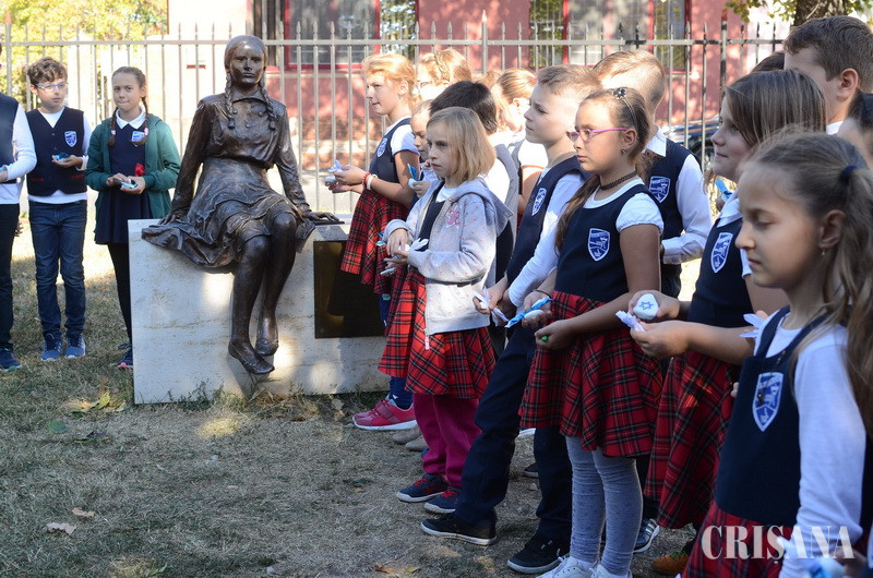 Ieri, s-au împlinit trei ani de la dezvelirea în Parcul Bălcescu a Memorialului „Eva Heyman”, în amintirea copiilor evrei deportați din Oradea. Pentru a marca acest eveniment, 60 de elevi de la Liceul Greco-Catolic au pregătit un emoționant program omagial.