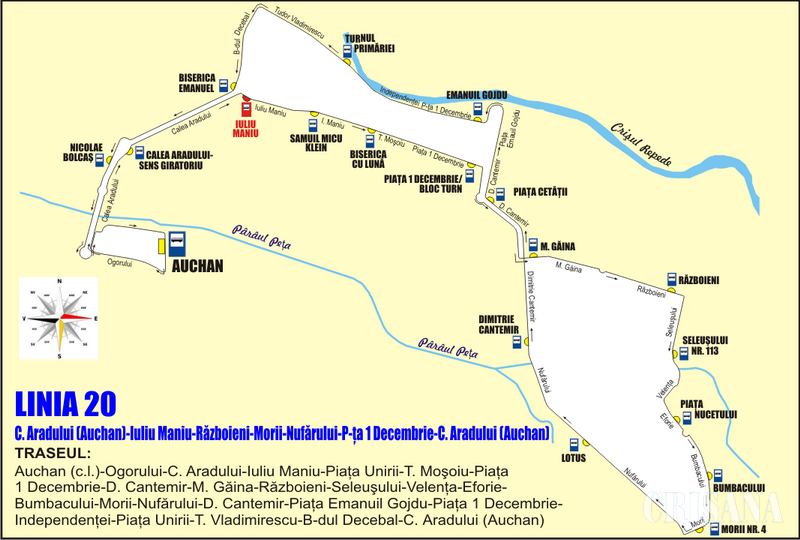 În ceea ce priveşte autobuzul 20, acesta va circula pe traseul: str. Ogorului - Calea Aradului - str. I. Maniu - str. T. Moşoiu - Piaţa Cetăţii - str. D. Cantemir - str. Muntele Găina - str. Războieni - str. Seleuşului - str. Bumbacului - str. Morii - str. Nufărului - str. D. Cantemir - Piaţa Cetăţii - Piaţa Em. Gojdu - Piaţa 1 Decembrie - str. Independenţei - str. T. Vladimirescu - Bulevardul Decebal - Calea Aradului - str. Ogorului. Totodată, traseul liniei 23 va fi: str. Calea Aradului (Carrefour) - str. Vlădeasa - str. Calea M. Basarab - str. Sucevei - str. Horea - Piaţa 22 Decembrie - str. S. Puşcariu - str. D. Cantemir - Piaţa Cetăţii - Piaţa E. Gojdu - Piaţa 1 Decembrie - str. Independenţei - str. T. Vladimirescu - Bulevardul Decebal - str. Vlădeasa - Calea Aradului (Carrefour). OTL a anunţat că pentru liniile 20 şi 23 va fi operaţională staţia Bancpost de pe strada Tudor Vladimirescu.