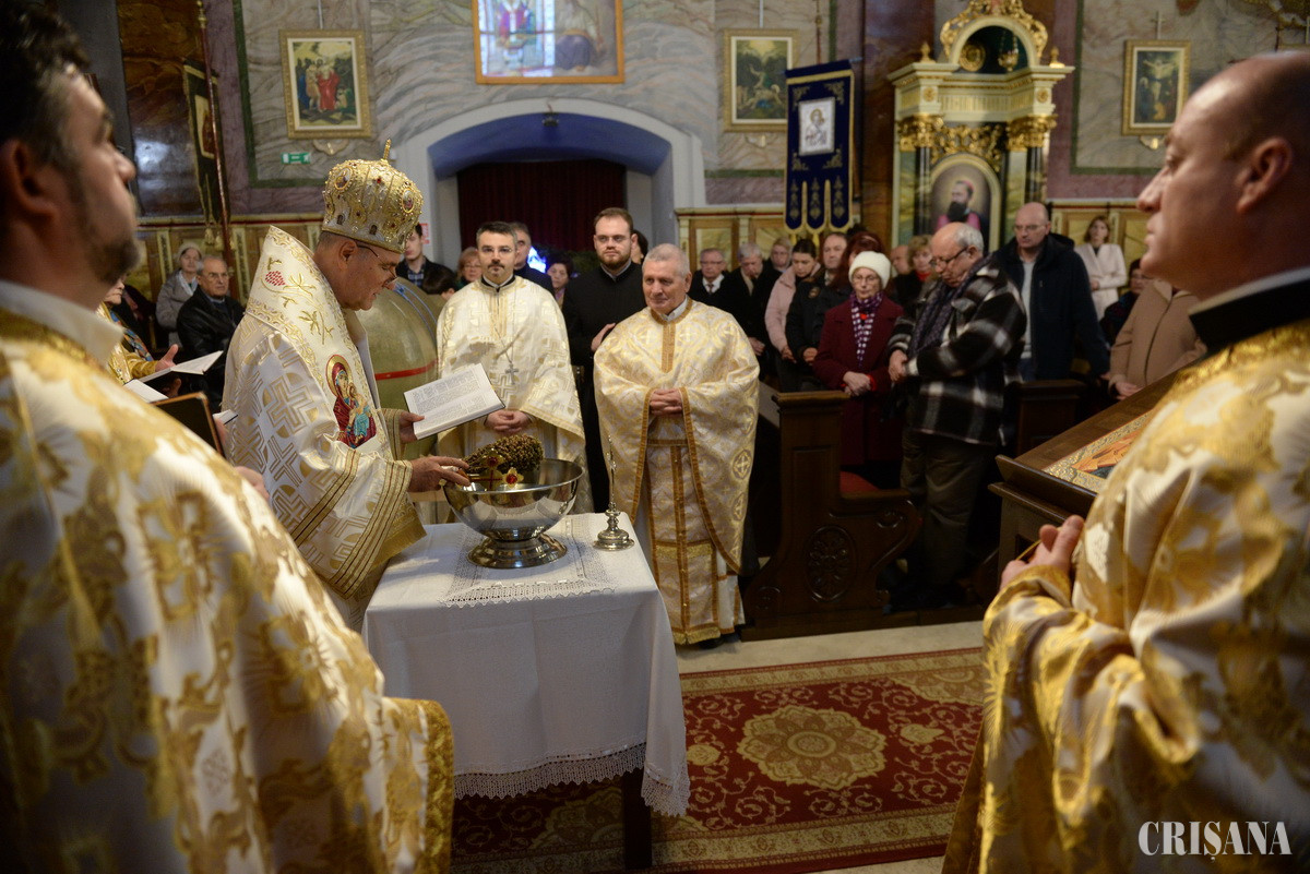 Slujba de Bobotează a fost oficiată de PS Sa Virgil Bercea, episcopul greco-catolic de Oradea, înconjurat de un sobor de preoţi. În jur de 1.300 de litri de apă s-au sfinţit pentru credincioşii care au venit în număr frumos la acest lăcaș de cult. „O parte din Agheasma Mare a fost oferită credincioșilor în sticle, iar cine și-a adus recipient curat de acasă, s-a putut servi din ciubăr”, ne-a spus părintele Ovidiu Duma, parohul Catedralei „Sfântul Nicolae”.