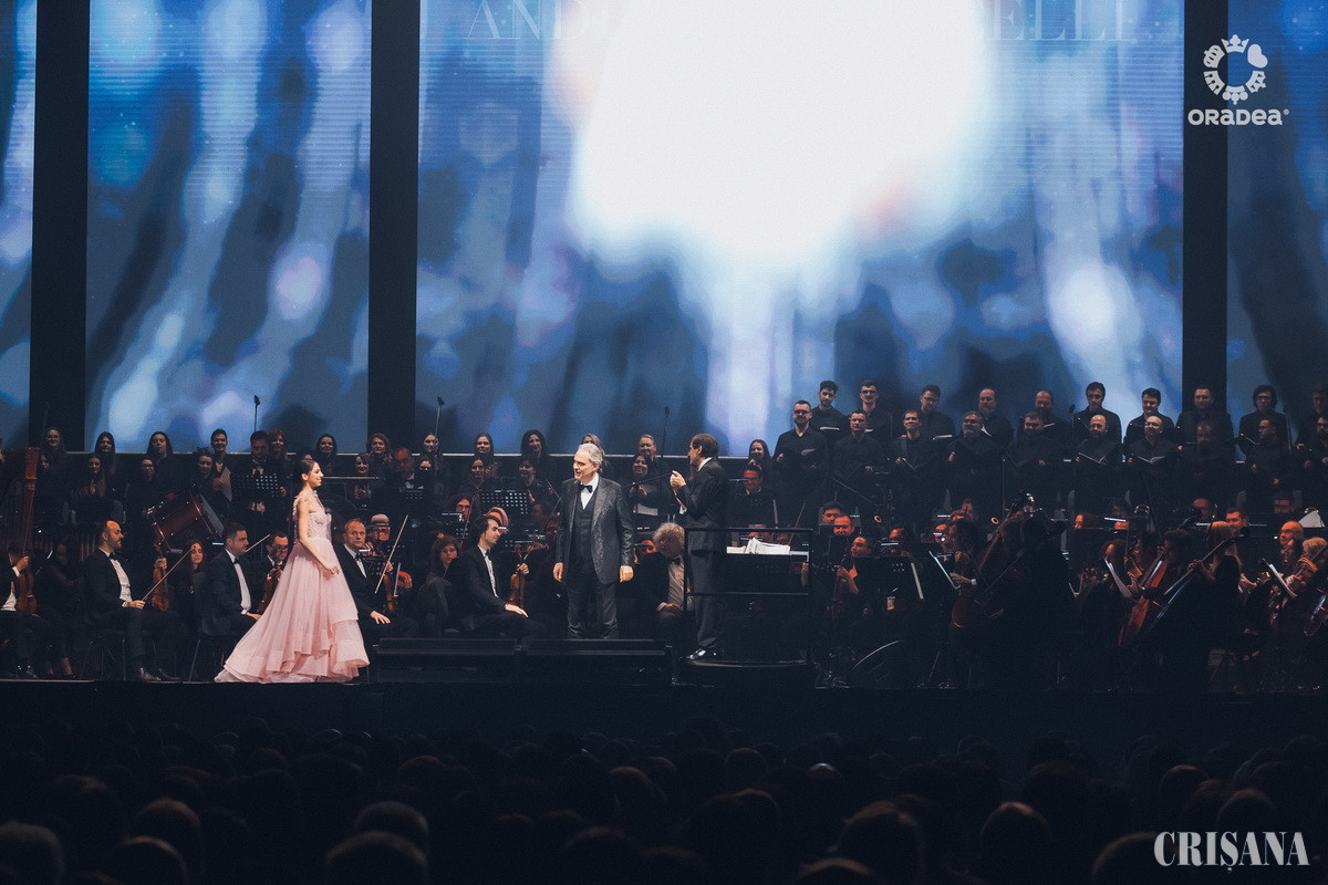 În jur de 6.000 de persoane au asistat, duminică seara, la Oradea Arena, la un spectacol de neuitat: „Andrea Bocelli – 30th Anniversary”, susţinut de unul dintre cei mai apreciaţi tenori din lume, acompaniat de Orchestra şi corul Filarmonicii de Stat Oradea, dirijate de maestrul italian Marcello Rota. Pe scenă au mai urcat soprana Cristina Păsăroiu, violonista Rusanda Panfili şi cântăreaţa italiană Eliza G.