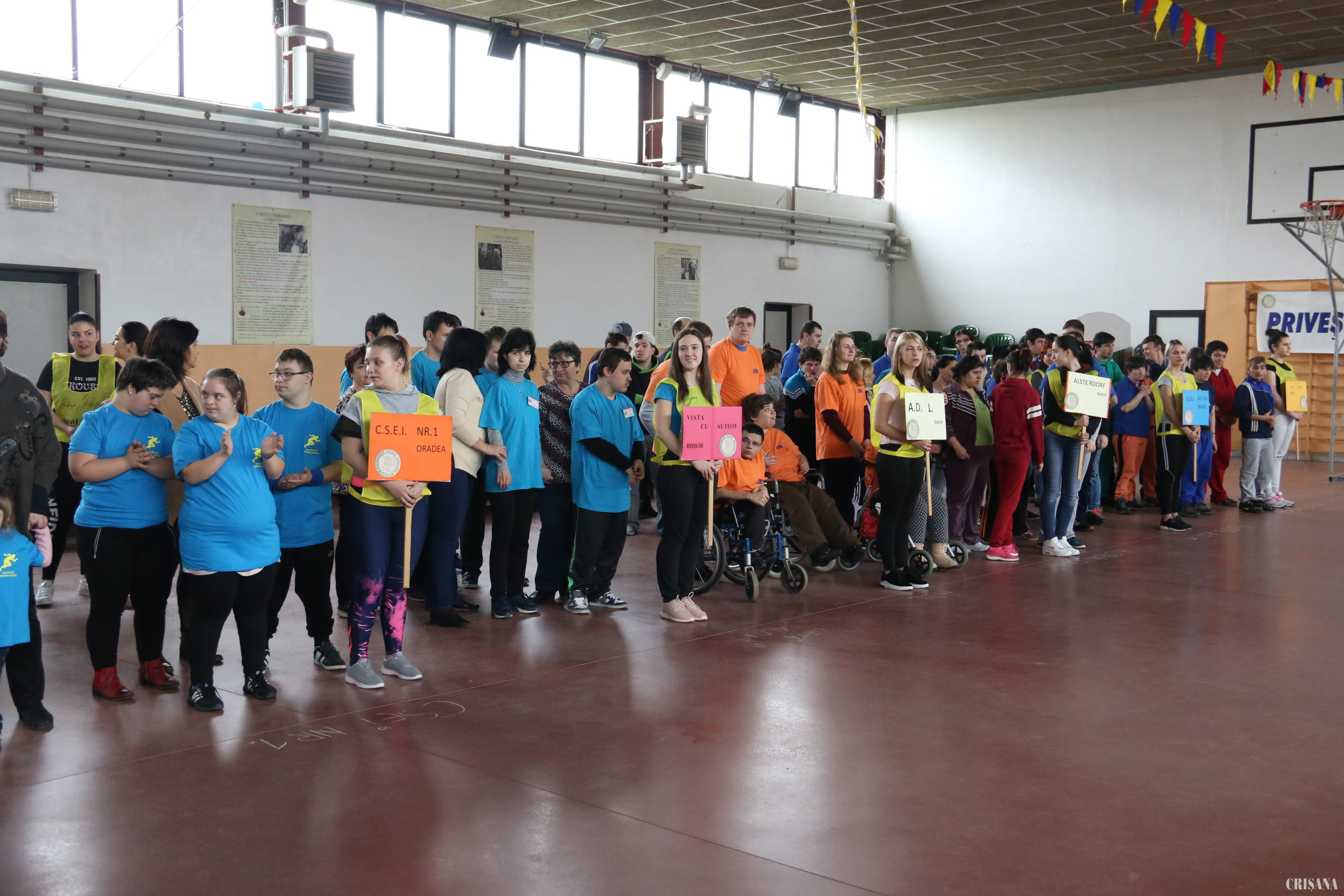Sala de sport a Liceului „Don Orione” a devenit, vineri, neîncăpătoare, pentru cei peste 100 de copii, tineri și adulți cu dizabilităţi din Oradea și Bihor, care au participat la eveniment, reprezentând: Asociaţia „Viaţă cu autism” Bihor, SOS autism Bihor, Asociația „Alsterdorf ” Oradea, Fundația de Scleroză Multiplă - Centrul de Recuperare Bratca, Asociația Down Oradea (Centrul de Zi „Iedera”) pentru tineri și adulți, ADL Oradea, CSI Cristal Oradea și CSEI Nr. 1 Oradea.