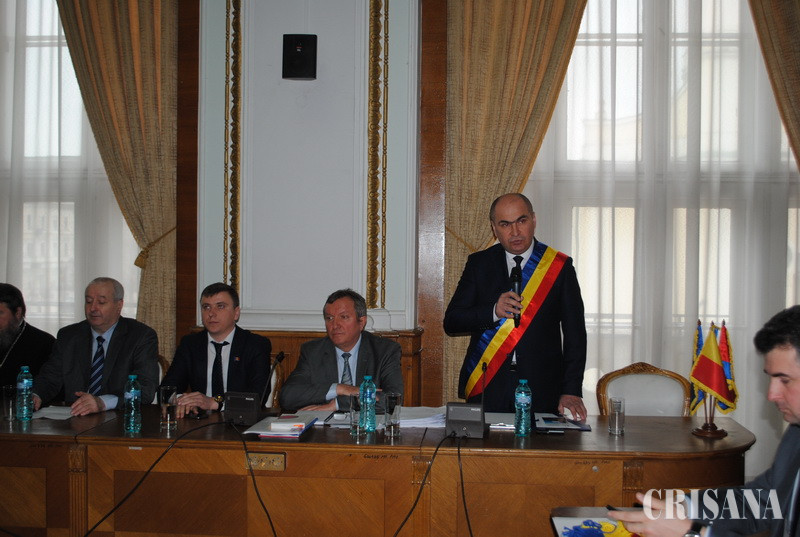 Împlinirea a 100 de ani de când Sfatul Ţării din Basarabia a votat în favoarea Unirii Republicii Democrate Moldoveneşti cu România a fost marcată ieri la Oradea printr-un moment festiv care a precedat şedinţa ordinară a Consiliului Local. La eveniment au participat primarul Ilie Bolojan, viceprimarii Mircea Malan și Florin Birta, secretarul municipiului, Ionel Vila, prefectul Ioan Mihaiu, Episcopul ortodox al Oradiei, Sofronie Drincec, rectorul Universităţii din Oradea, Constantin Bungău, consilierii locali, directori din cadrul primăriei Oradea şi ai societăţilor din subordinea municipalităţii, istorici, cadre universitare, reprezentanţi ai cultelor, şefi ai unor servicii deconcentrate, personalităţi locale şi studenţi basarabeni. De asemenea, au fost prezenţi prof. univ. dr. Ion Eremia, decanul Facultăţii de Istorie şi Filosofie a Universităţii de Stat din Republica Moldova şi o delegaţie din comuna Băcioi. Această comună de 12.000 de locuitori situată în suburbia capitalei Chișinău, s-a înfrățit cu orașul Aleșd, iar în aceste zile va semna o declarație simbolică de reunire a Basarabiei cu România. Toţi oaspeţii şi participanţii la momentul festiv au primit câte un calendar de perete editat de Primăria Oradea şi câte un fular tricolor tricotat.
