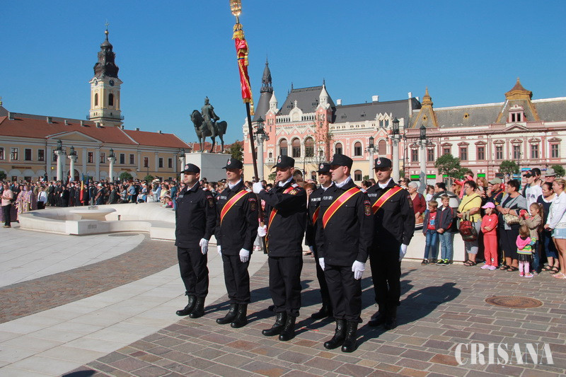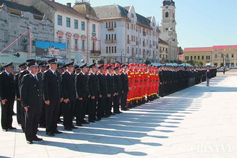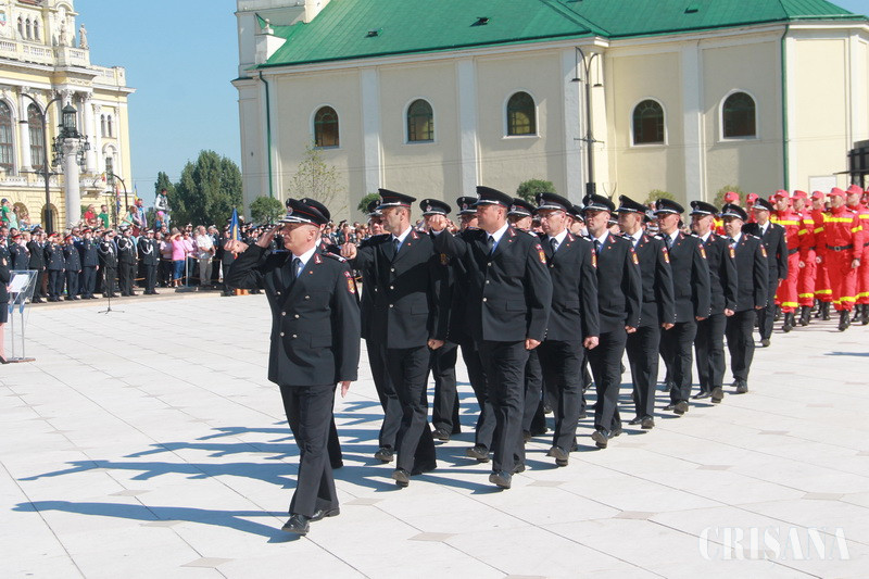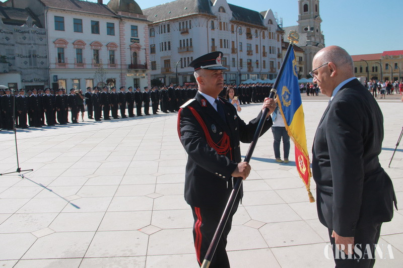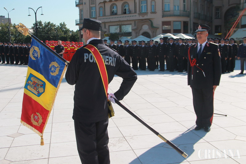 În Piaţa Unirii din Oradea, în faţa statuii lui Mihai Viteazul, a avut loc vineri, 12 august, între orele 10.00 - 11.15, ceremonia militară de înmânare a Drapelului de luptă Inspectoratului pentru Situaţii de Urgenţă „Crişana” al judeţului Bihor, unitate militară ce a luat naştere la data de 15 decembrie 2004, prin unificarea Brigăzii de Pompieri „Crişana” cu Inspectoratul de Protecţie Civilă Bihor.
