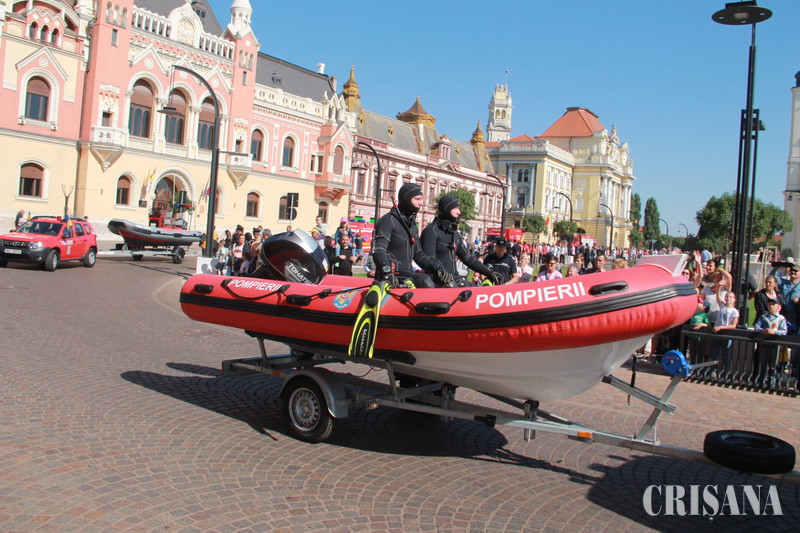 Festivitatea a continuat cu defilarea detaşamentului de onoare al unităţii, format din 10 plutoane, încheindu-se, în aplauzele celor prezenţi, cu defilarea tehnicii din dotarea Inspectoratului pentru Situaţii de Urgenţă „Crişana” al judeţului Bihor.