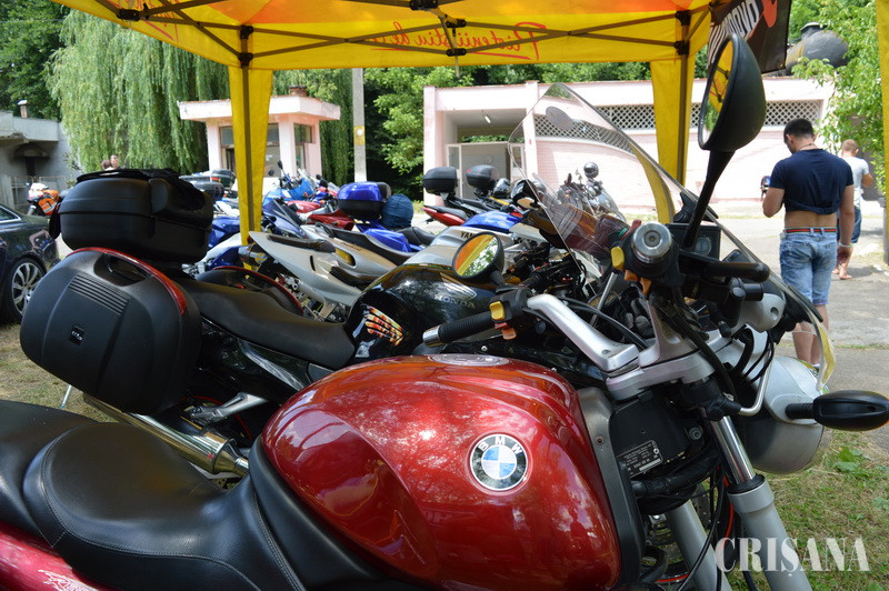Mai multe motociclete decât oameni. Așa arăta sâmbătă, în jurul orei 13.00, Ștrandul cu Valuri din Băile 1 Mai. Pe alei, câțiva pasionați discutau despre eveniment în timp ce un bărbat înalt și solid tura la maxim motorul unei bestii nichelate. S-a făcut liniște când unul dintre organizatori a urcat pe scenă, cerând un traducător în limba maghiară, pentru a anunța programul concertelor care urmau să aibă loc în jurul orei 21.00. Trupele de rezistență, orădenii de la N.O.R. și Cargo. Pe ambele alei care duceau spre scenă erau amenajate locații cu medalioane, tricouri, geci, mănuși speciale pentru motocicliști și pentru iubitorii muzicii rock. La câțiva metri, doi bărbați tatuați din cap până în picioare își făcuseră curaj și înotau în apa limpede și albastră a bazinului. Atmosfera era relaxată, mai ales că la boxele mari de la scenă se auzea muzică rock, dar nu foarte tare.