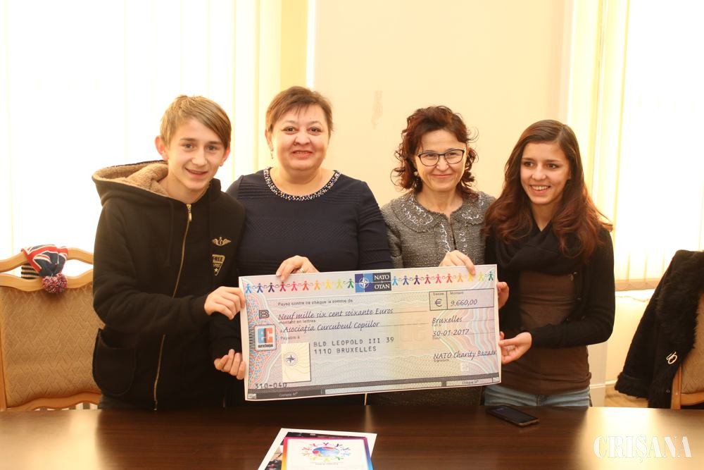 Fundaţia NATO Charity Bazaar din Bruxelles a desemnat cele două organizaţii neguvernamentale pe care le va sprijini financiar în 2017: Asociaţia Curcubeul Copiilor din Oradea şi Asociaţia Haţieganu-Papai-Pariz a Spitalului Municipal din Marghita. Cecurile simbolice, în valoare de 9.660 euro, respectiv 9.790 euro, au fost înmânate de către preşedinta Fundaţiei, Katalin Schmidt.