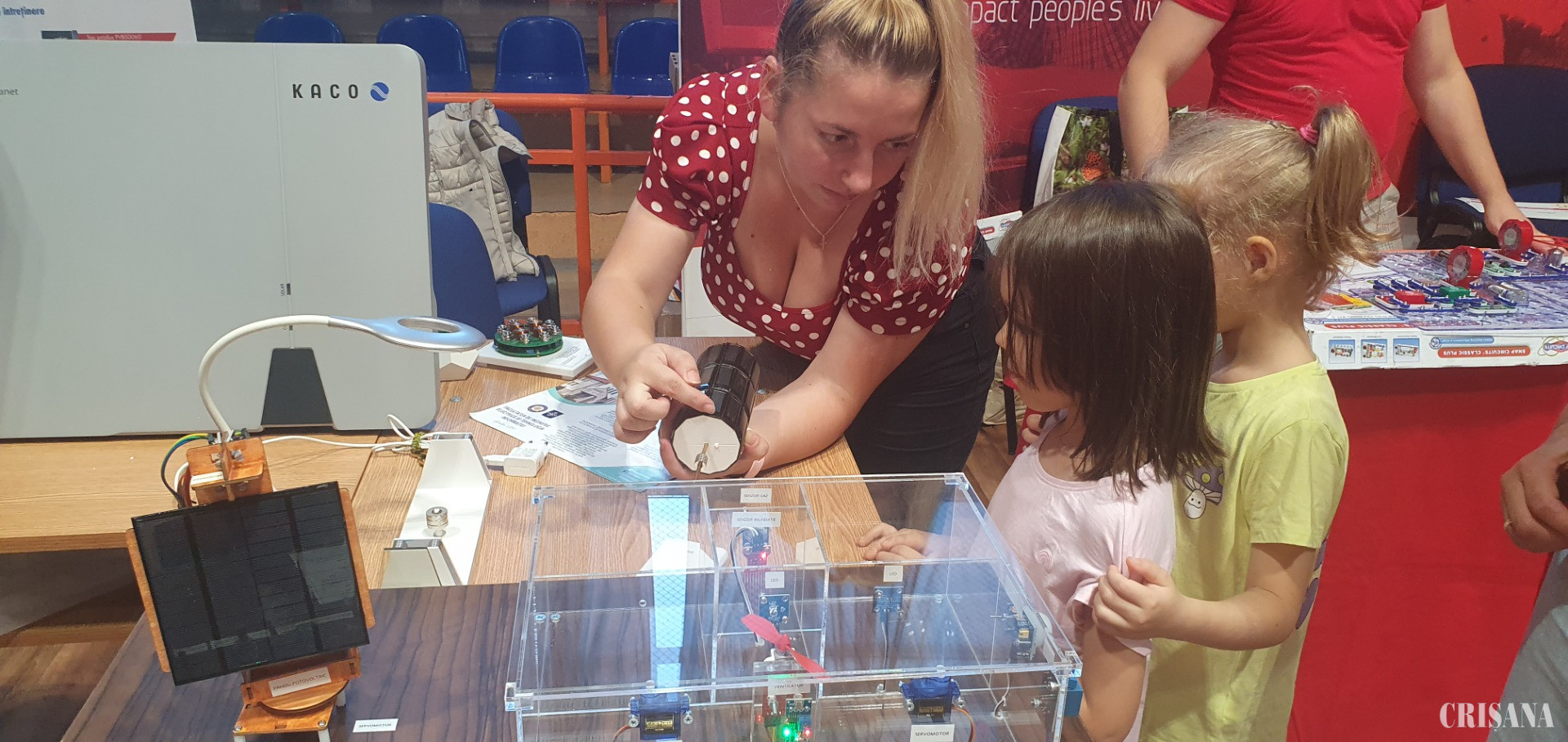 Au fost standuri unde au putut fi urmărite experimente de laborator sau călătorii în lumea virtuală. Un tânăr student a folosit câteva lămâi pentru a le explica celor mici cum circulă curentul electric. La un alt stand au putut vedea la microscop o varietate de insecte sau urmări cum plantele așezate în apă în eprubete produc bule de oxigen.