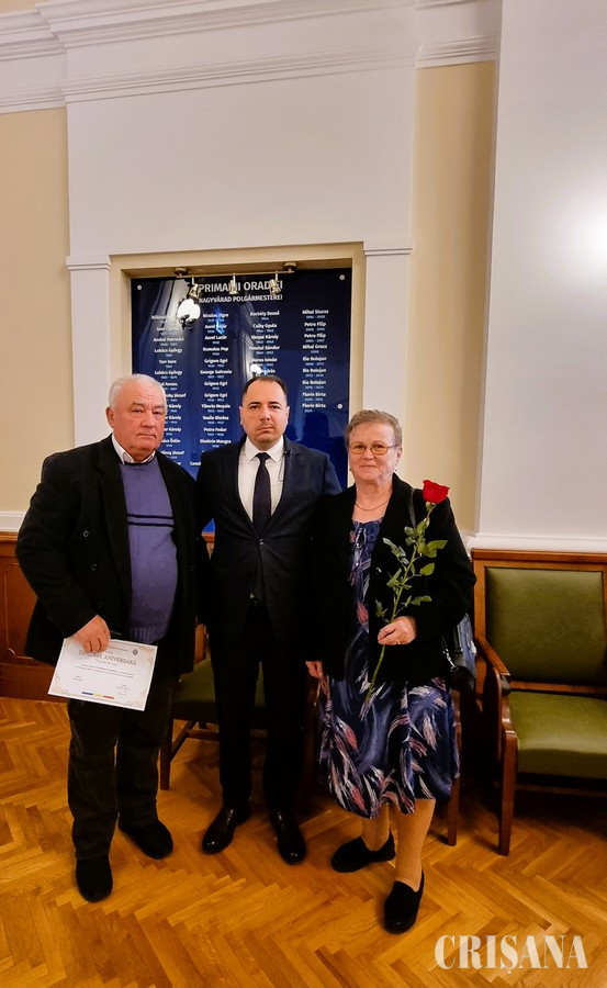 „Ne aflăm astăzi aici pentru a sărbători un moment deosebit, un simbol al statorniciei și al iubirii neîntrerupte: Nunta de Aur. 50 de ani de căsătorie nu sunt doar o realizare extraordinară, ci și o dovadă vie a devotamentului, respectului reciproc și a unei povești de viață construite cu răbdare, înțelepciune și sacrificii. Municipalitatea orădeană apreciază profund acest angajament, acest model de viață pe care îl oferiți. Gestul nostru de astăzi este doar un mod prin care dorim să vă arătăm că sunteți prețuiți și că povestea dumneavoastră are un loc important în inima orașului nostru. Vă dorim să continuați acest drum cu sănătate, liniște și bucurie alături de cei dragi. Sperăm ca anii care vin să fie tot atât de frumoși și plini de iubire ca și cei pe care i-ați petrecut împreună până acum”, a declarat viceprimarul Teofil Filimon.