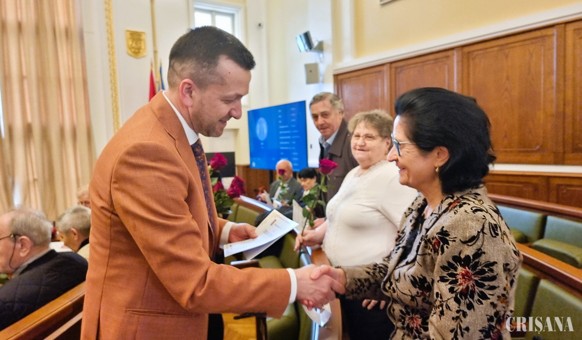 Primarul Florin Birta a felicitat joi, 3 aprilie, cele 27 de cupluri prezente în Sala „Traian Moșoiu” a Primăriei Oradea, în cadrul evenimentului „Nunta de Aur”.
