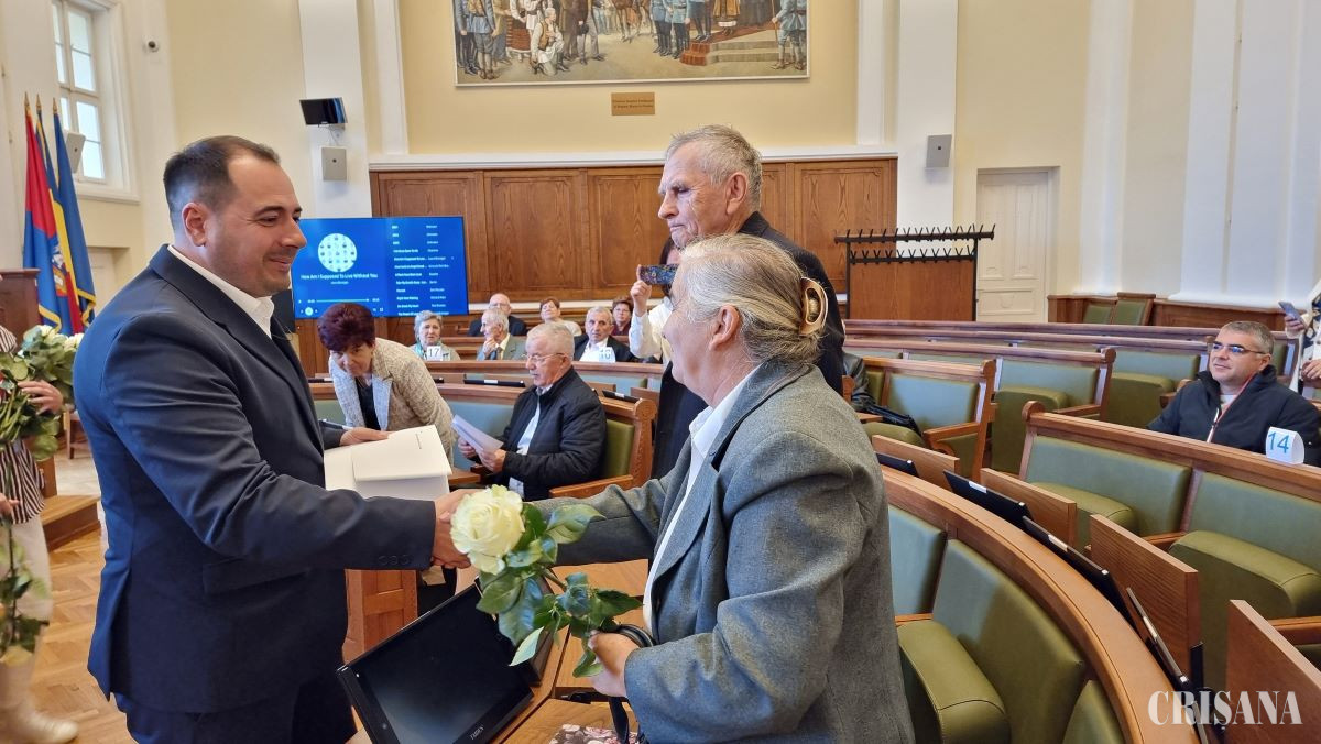 În Sala Mare a Primăriei Oradea, 24 de cupluri au fost sărbătorite miercuri, 1 octombrie, cu ocazia celei de-a zecea ediţii din acest an a evenimentului „Nunta de Aur”.