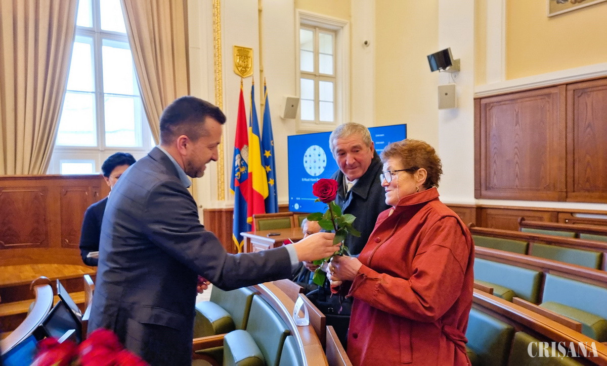 „Cincizeci de ani de căsătorie reprezintă un lucru extraordinar mai ales în zilele noastre. Cincizeci de ani echivalează cu o viață de om și suntem aici pentru a vă mulțumi pentru exemplul pe care ni-l oferiți. Sunt convins că au fost ani cu perioade frumoase sau mai puțin bune, ani cu bucurii sau necazuri, dar ceea ce este important este că ați rămas împreună. Vă suntem recunoscători că sunteți azi în viețile noastre ca părinți sau bunici, ca modele de familie unită, iar eu vă felicit atât în numele meu personal, cât și al Primăriei Oradea și al Consiliului Local Oradea și vă doresc multă sănătate și tot binele din lume alături de toți cei dragi dumneavoastră”, a menţionat primarul Florin Birta.