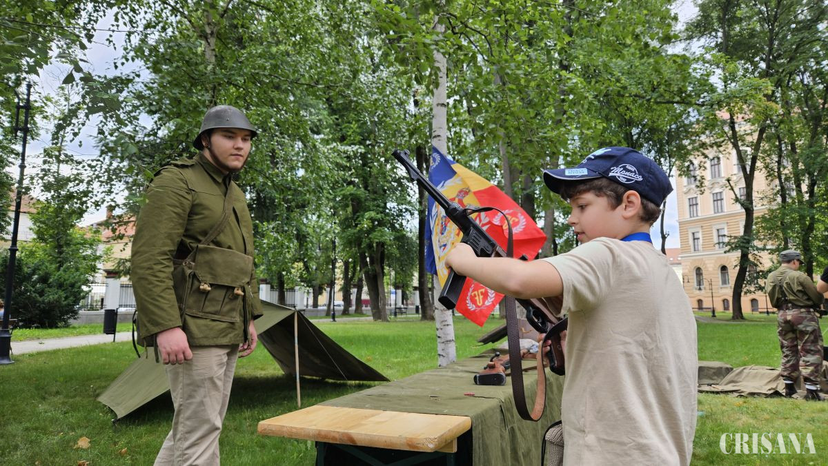 În curtea Muzeului Țării Crișurilor, micuții au putut intra în pielea soldaților, au aflat lucruri interesante despre arme și muniții, au putut să arunce o grenadă sau să tragă la țintă. Toate acestea în cadrul unei expoziții militare interactive organizată de grupului de reconstituire istorică „Străjerii Crișanei” în colaborare cu Muzeul Țării Crișurilor Oradea – Complex Muzeal și Muzeul Militar Național „Regele Ferdinand I” filiala Oradea.