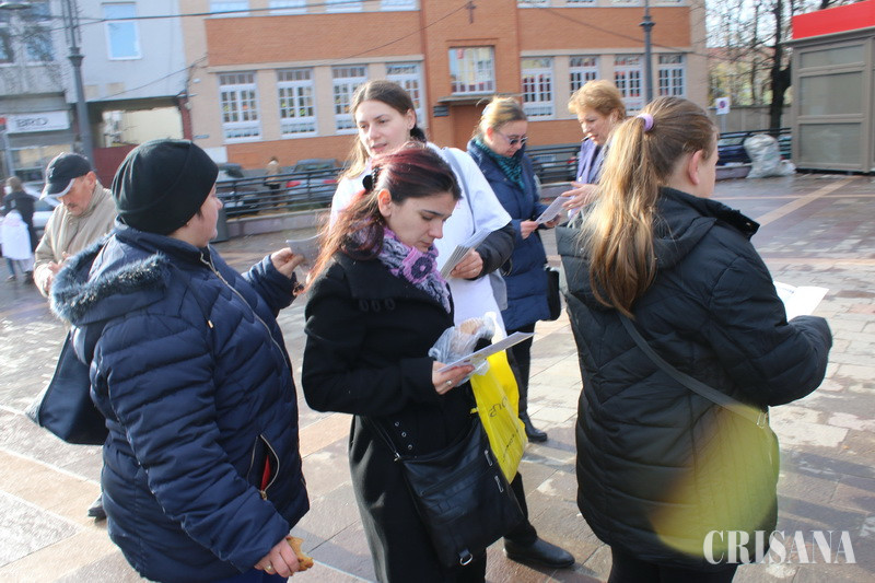 Acțiunea stradală s-a desfășurat, simultan, în faţă la Magazinul „Billa” de la Oradea Plaza şi Magazinul „Crişul”, cu participarea elevilor de la Liceul de Arte Oradea și a celor de la Liceul Reformat „Lorántffy Zsuzsanna”.