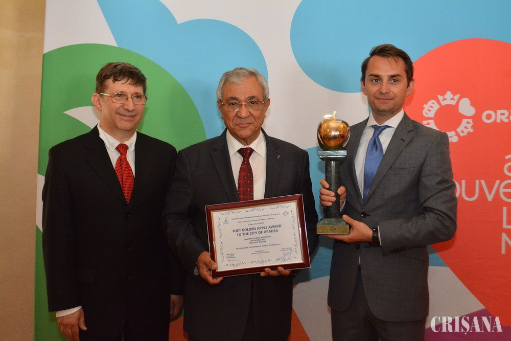Federaţia Internaţională a Jurnaliştilor şi Scriitorilor de Turism, FIJET, a decernat oraşului Oradea trofeul „Mărul de Aur”. Preşedintele FIJET, Tijani Haddad, a oferit trofeul „Mărul de Aur” managerului de destinație, Mihai Jurca, în cadrul unei ceremonii care s-a desfăşurat sâmbătă, în Cetatea Oradea, sala cu Grifoni.