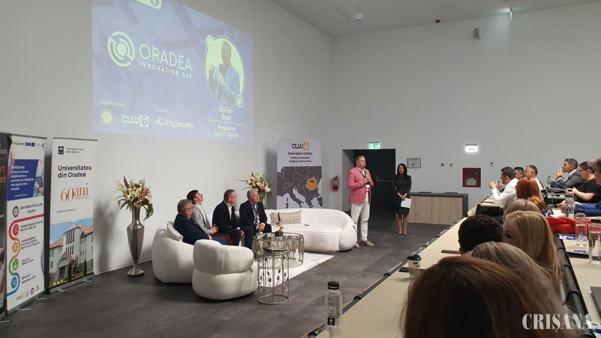 Oradea Innovation Day a reunit peste 150 de participanți din mediul de afaceri, instituții publice, mediul socio-economic și universitar. Agenda evenimentului a inclus două paneluri tematice care au abordat transformarea digitală a serviciilor publice, revoluția digitală în sectorul economic, precum și două sesiuni de brokeraj în care s-au prezentat soluții concrete pentru accelerarea tranziției digitale și sustenabile atât în mediul public, cât și în cel privat.