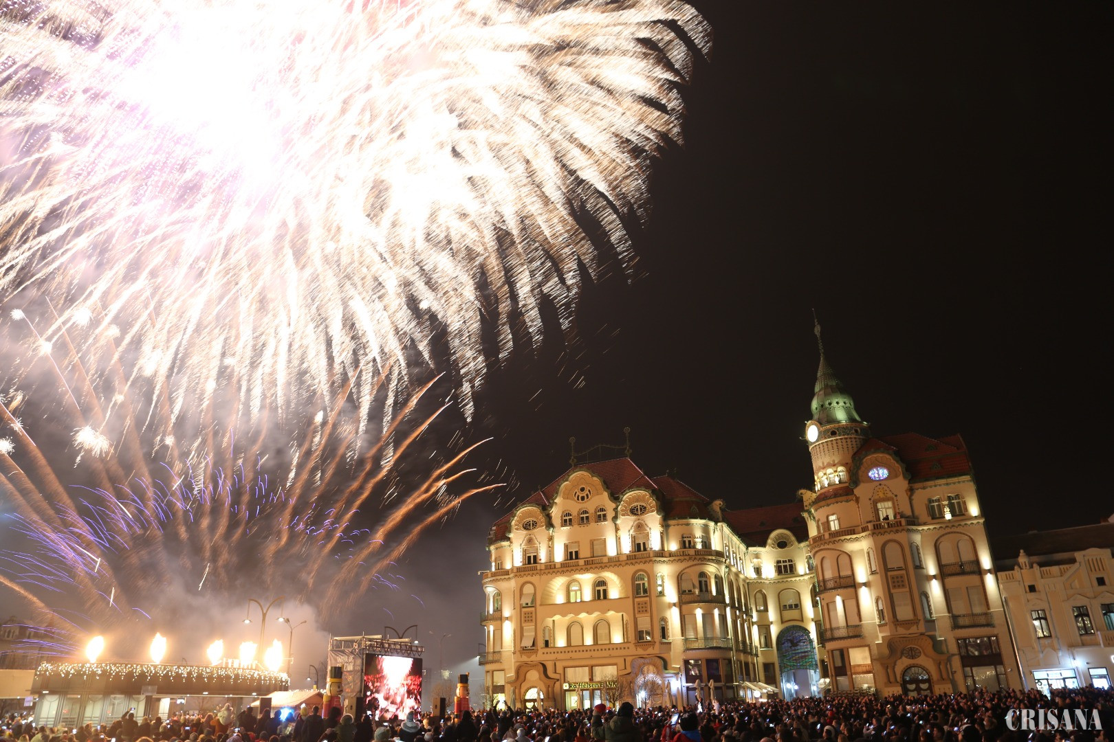 Orădenii au sărbătorit trecerea dintre ani cu focuri de artificii - Revelion în Piaţa Unirii