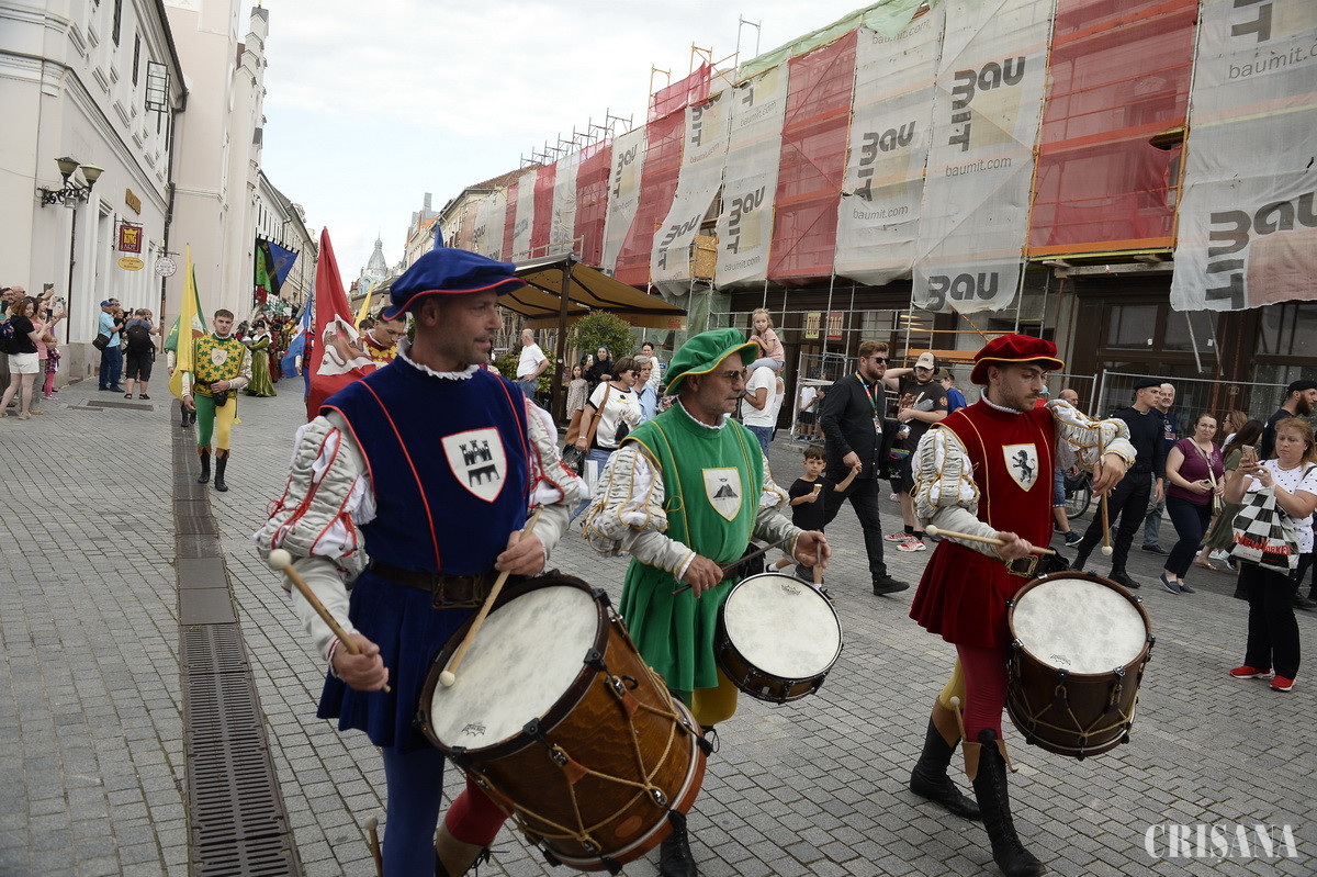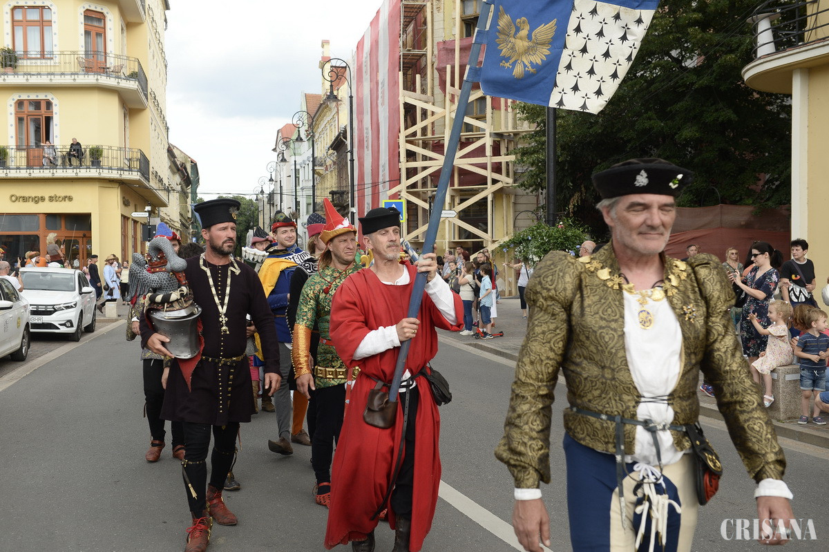 Festivalul Medieval Oradea a fost deschis, oficial, joi, cu o paradă spectaculoasă a cavalerilor, care a pornit de la Centrul Comercial Crișul și a ajuns în Piața Unirii. Aici a avut loc o paradă de modă medievală și un spectacol cu spadasini.