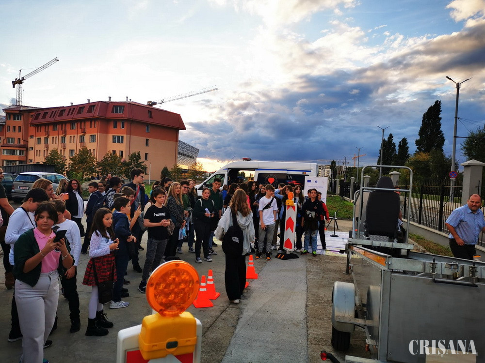 Cei prezenți au avut ocazia să participe la un experiment, care presupunea parcurgerea unui traseu cu obstacole, purtând ochelari speciali, ce distorsionează realitatea și simulează efectele psihomotorii ale consumului de alcool sau droguri. De asemenea, în curtea Universității Oradea, polițiștii Serviciului Rutier au pus la dispoziția participanților laboratorul mobil de siguranță rutieră, unde au fost proiectate materiale video cu recomandări preventive, destinate tuturor categoriilor de participanți la trafic, dar, în special, copiilor.