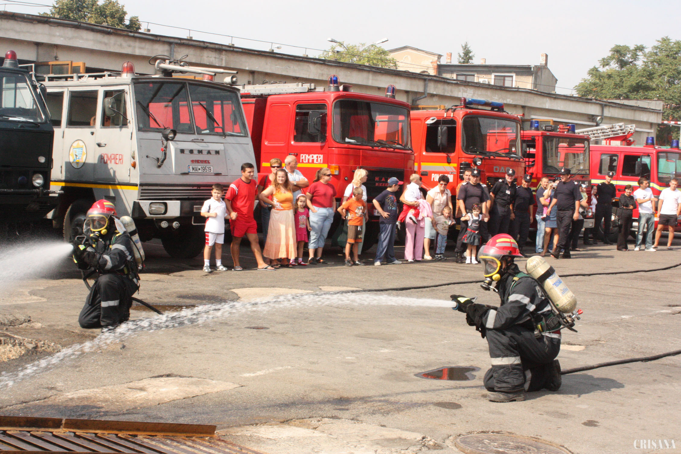 Ziua Pompierilor din România, aniversată an de an la 13 septembrie a.c., are rolul de a rememora un strălucit episod din istoria naţională - lupta purtată pe Dealul Spirii de compania de pompieri din Bucureşti condusă de căpitanul Pavel Zăgănescu împotriva invadatorului otoman, venit să înfrângă, prin forţa armelor, mişcarea revoluţionară de la 1848. În vremurile care au urmat, pompierii au participat activ, ca apărători ai vieţii semenilor şi bunurilor acestora, remarcându-se, prin spirit de sacrificiu şi profesionalism, şi cu ocazia altor evenimente din istoria României - operaţiunile militare din timpul Războiului de Independenţă, confruntările armate din perioada celor două Războaie Mondiale, implicându-se, ori de câte ori a fost cazul, împotriva efectelor distrugătoare ale incendiilor, calamităţilor naturale şi altor situaţii de risc. Pompierii militari îşi continuă şi astăzi, cu acelaşi ataşament, misiunea de apărare a concetăţenilor. Ziua porţilor deschise la ISU Bihor a început încă de la ora 09.00, când toţi cei care au avut curiozitatea să vadă unde îşi desfăşoară activitatea pompierii, cei care luptă zi de zi cu flăcările, salvează vieţi sau iau parte la diferite situaţii de urgenţă, au putut să o facă fără niciun fel de reţinere. De la ora 14.00, programul a devenit şi mai interesant. Pompierii militari au executat diferite exerciţii, cum ar fi cele de stingere a unui incendiu, de salvare la înălţime sau de descarcerare a unei persoane aflate într-un autoturism avariat. Cei mai încântaţi de cele prezentate au fost copiii, care, la final, au plecat spre casă cu dorinţa ca peste câţiva ani să fie ei cei care vor lua parte la asemenea exerciţii, însă nu în calitate de vizitatori, ci în cea de pompieri. Aceştia au avut posibilitatea să se urce în autospecialele cu apă şi spumă ale ISU, în cele ale SMURD sau să încerce căştile de protecţie ale pompierilor. Până la închiderea manifestării, sute de trecători s-au abătut din drum să vadă spectacolul. De la părinţi la copii, toţi au fost plăcut surprinşi de eveniment, însă au fost şi persoane puţin dezamăgite care au ţinut să precizeze că, în urmă cu un an, când manifestările s-au desfăşurat în parcarea din Piaţa Independenţei, amploarea evenimentului a fost mult mai mare şi a atras mult mai mulţi orădeni, lucru care ar fi trebuit să se întâmple şi în acest an.