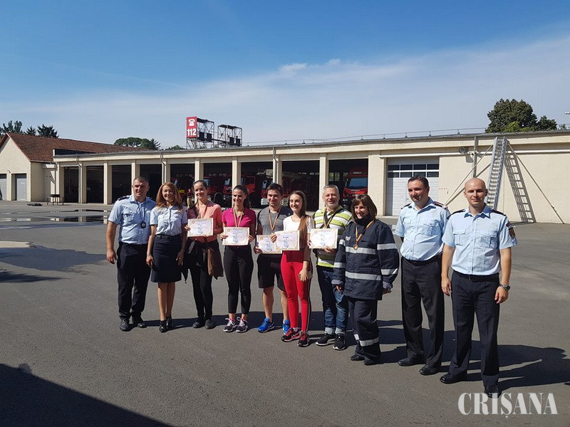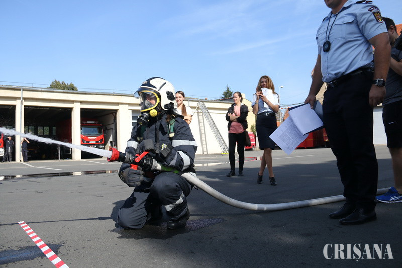 Ieri, pompierii orădeni i-au provocat pe ziarişti la o competiţie dedicată special reprezentanţilor mass-media. Concursul „Jurnalistul pompier” a cuprins probe de pregătire motrică specifică pompierilor militari și de refulare a apei la țintă, durata circuitului în cadrul căruia s-au desfășurat probele fiind de 6 - 10 minute. Ziariştii, echipaţi corespunzător, au avut ocazia să afle pe propria piele ce înseamnă o mică parte din meseria de salvator, dar şi condiţiile în care pompierii îşi desfăşoară activitatea. Jurnaliştii au urmat un traseu pe parcursul căruia au urcat pe scară, au refulat apa la ţintă şi au cărat diverse echipamente, inclusiv „victime”, totul contra-cronometru. La final, la categoria fete, locul I a fost ocupat de Alina Hambaraş (Crişana), locul II i-a revenit Oanei Farcaş (Bihon.ro), iar locul III a fost ocupat de Crina Dobocan (Jurnalul Bihorean). Un premiu special, pentru participare, i-a fost acordat Mădălinei Sim (ebihoreanul.ro). La categoria băieţi, locul I a fost ocupat de Costel Demian (Bihon.ro) iar locul II de Robert Rezmuves (Radio Transilvania şi Plusz FM). Toţi ziariştii au fost recompensaţi cu diplome şi medalii.