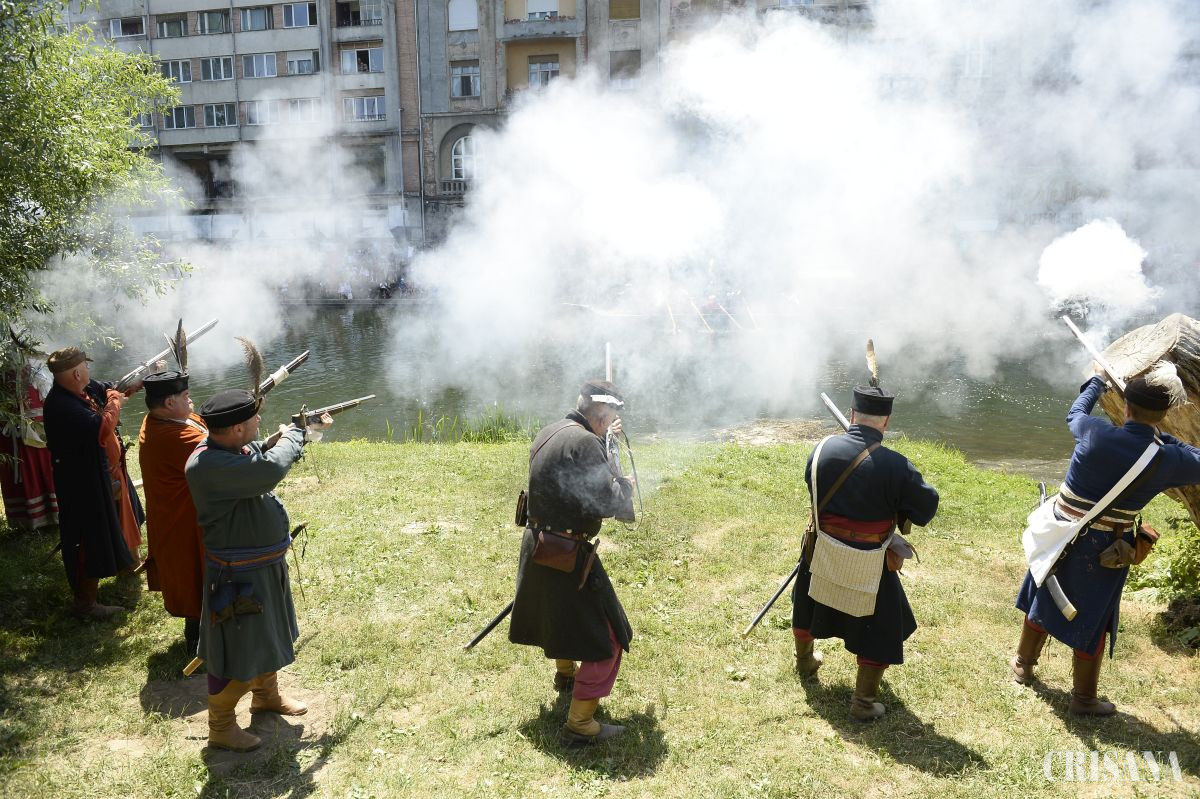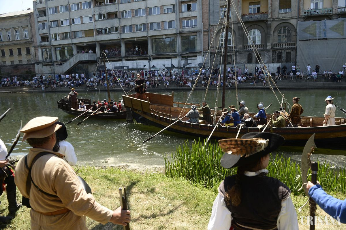 Sute de orădeni și turiști au asistat pe malurile Crișului Repede la reconstituirea unei confruntări navale. Bărci pline cu trupe otomane au atacat corăbii venețiene, în timp ce malurile râului erau apărate de brigăzi de muschetari.
