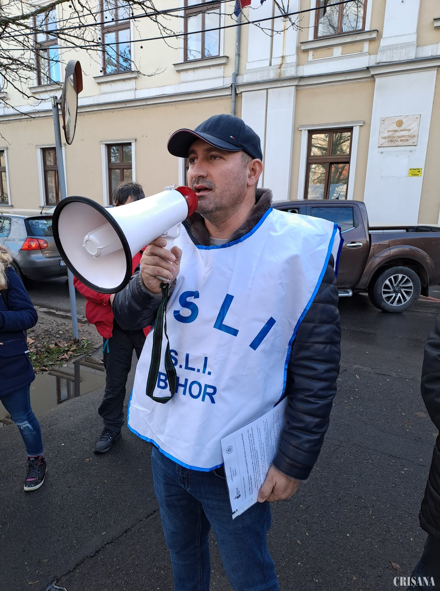 După o jumătate de oră de protest, reprezentanţii SLI Bihor, în frunte cu președintele SLI Bihor - prof. Flaviu-Ștefan Zancu, și cu primvicepreședintele, prof. Radu-Călin Hora, au mers la Prefectură, unde o delegație formată din patru persoane a fost primită la discuții.