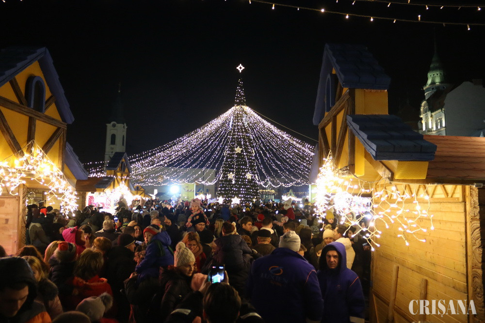 Aprinderea oficială a instalaţiilor luminoase specifice sărbătorilor de iarnă a avea loc aseară, la ora 18.00, butonul amplasat lângă bradul de Crăciun din Piața Unirii fiind apăsat de copii, alături de viceprimarul Florin Birta. Luminile s-au aprins îniţial în toată zona centrală, începând din perimetrul desfășurării Târgului de Crăciun, clădirea Primăriei Oradea, Podul Sf. Ladislau, Piața Ferdinand și strada Republicii, după care decorul luminos de sărbători a putut fi admirat în tot orașul. Iluminatul de sărbători a fost realizat pe toate bulevardele din municipiu, la toate intrările și ieșirile din oraș, pe principalele artere de circulație, pe poduri, în parcuri, dar și în piețe. Față de anii precedenți, în acest an au fost amenajate cu figurine luminoase parcurile Dragoș Vodă, Mihai Viteazul, I.C. Brătianu și 22 Decembrie. În total, în acest an, Oradea este împodobită cu 14 km de ghirlande și peste 300 medalioane și figurine luminoase amplasate pe stâlpi, plase luminoase, tuneluri şi fântâni de lumini. Acestea au diferite forme de brăduți, fulgi de nea, steluțe, reni, oameni de zăpadă.