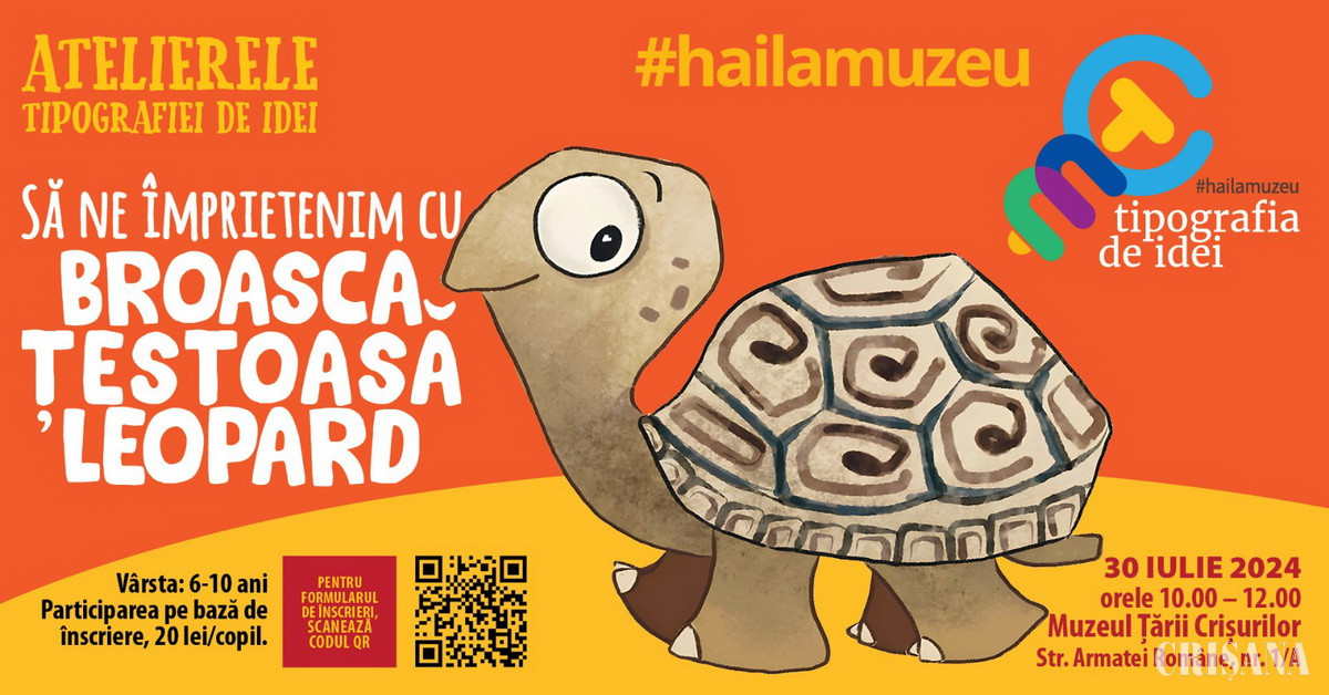 În cadrul atelierelor Tipografiei de idei | #hailamuzeu, ediția a II-a, va avea loc atelierul de educație muzeală „Să ne împrietenim cu broasca țestoasă Leopard”.