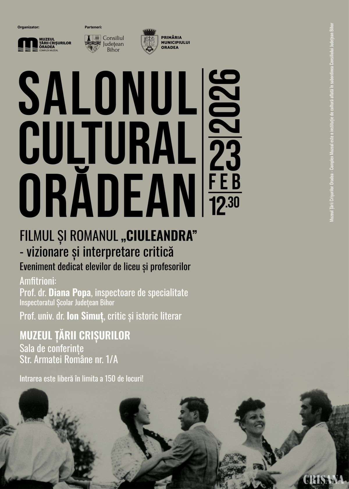 Evenimentul, dedicat mai ales elevilor de liceu și profesorilor, dar și publicului interesat, se va desfășura luni, 23 februarie, ora 12.30, în Sala de conferinţe a Muzeului Ţării Crişurilor.