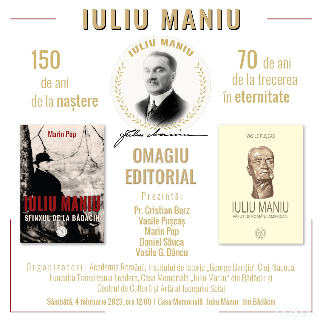 Lansarea cărților „Iuliu Maniu. Sfinxul de la Bădăcin” de Marin Pop și „Iuliu Maniu văzut de românii americani” de Vasile Pușcaș, publicate de Editura Școala Ardeleană în Colecția de Istorie contemporană, va avea loc în cadrul manifestărilor de sâmbătă de la Bădăcin, de la ora 12.00.