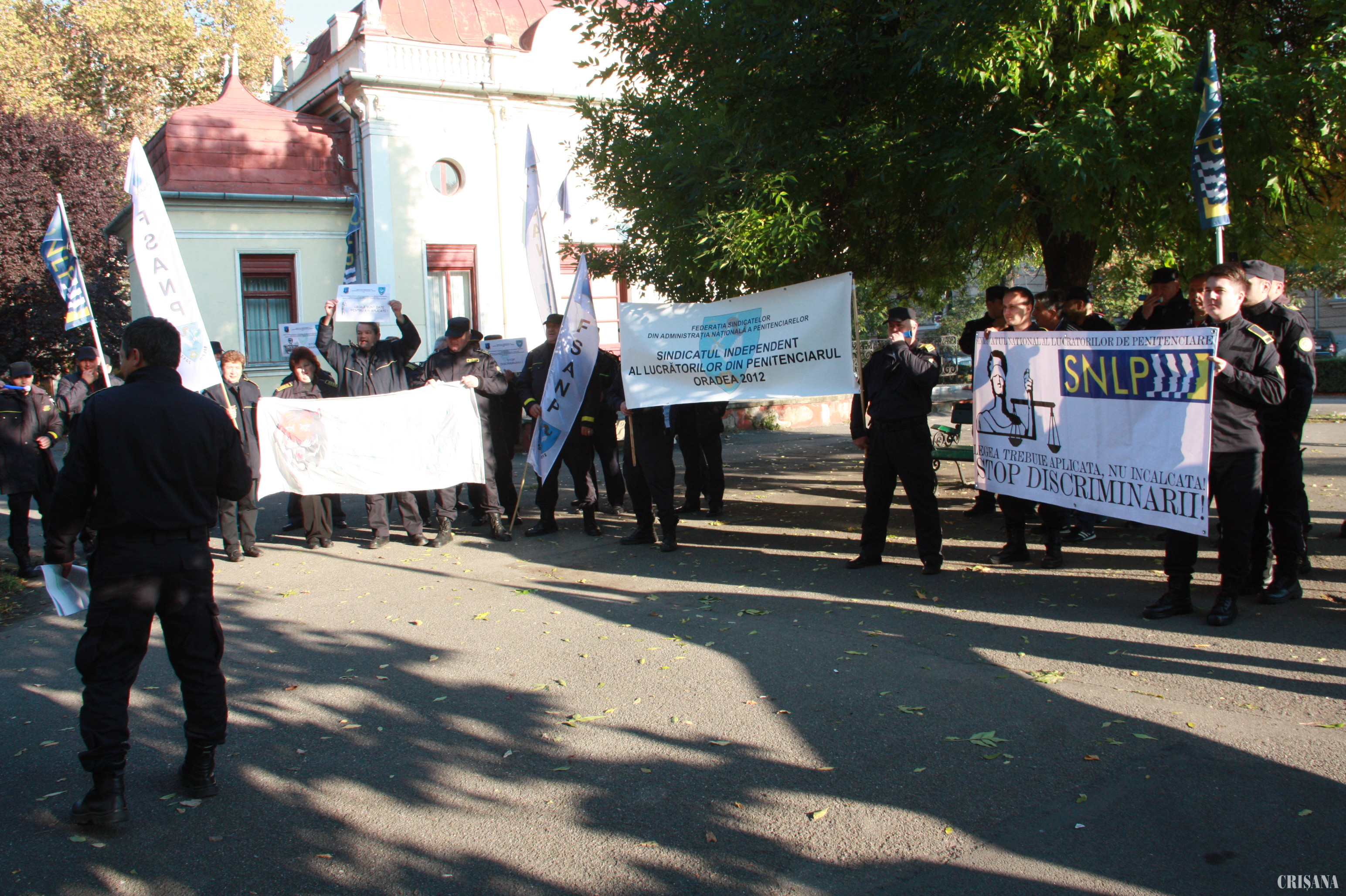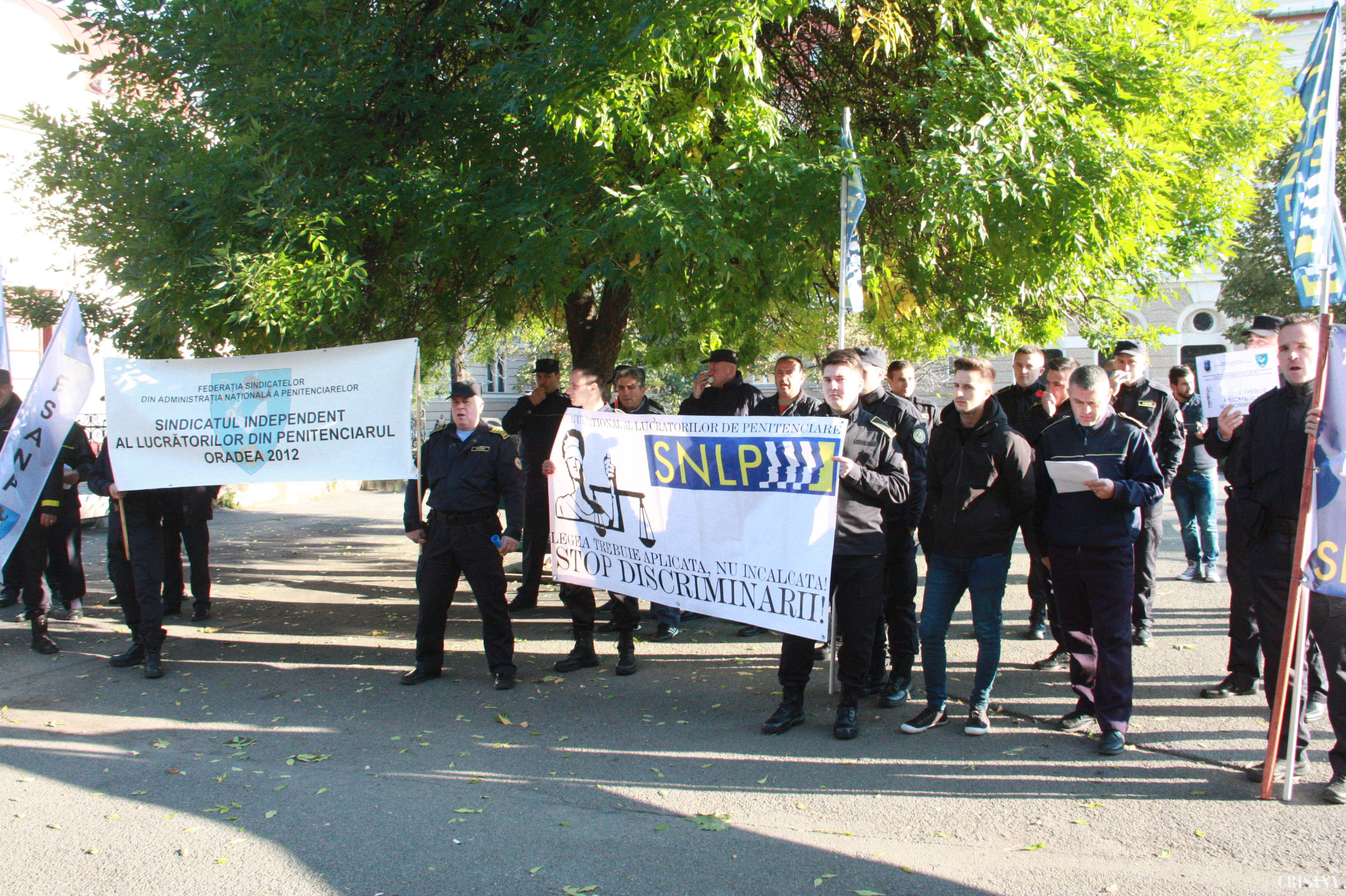 Peste 40 de angajaţi ai Penitenciarului Oradea au protestat, ieri dimineaţă, în faţa Prefecturii Bihor, nemulţumiţi de drepturile salariale, de orele suplimentare neplătite şi de condiţiile în care sunt nevoiţi să îşi desfăşoare activitatea. Potrivit liderilor sindicali, numai angajaţii din Penitenciarul Oradea au lucrat, în total, 20.000 de ore suplimentare, neremunerate. În plus, au arătat aceştia, în unitatea de detenţie din Oradea lucrează 220 de persoane, numărul necesar fiind de peste 400.