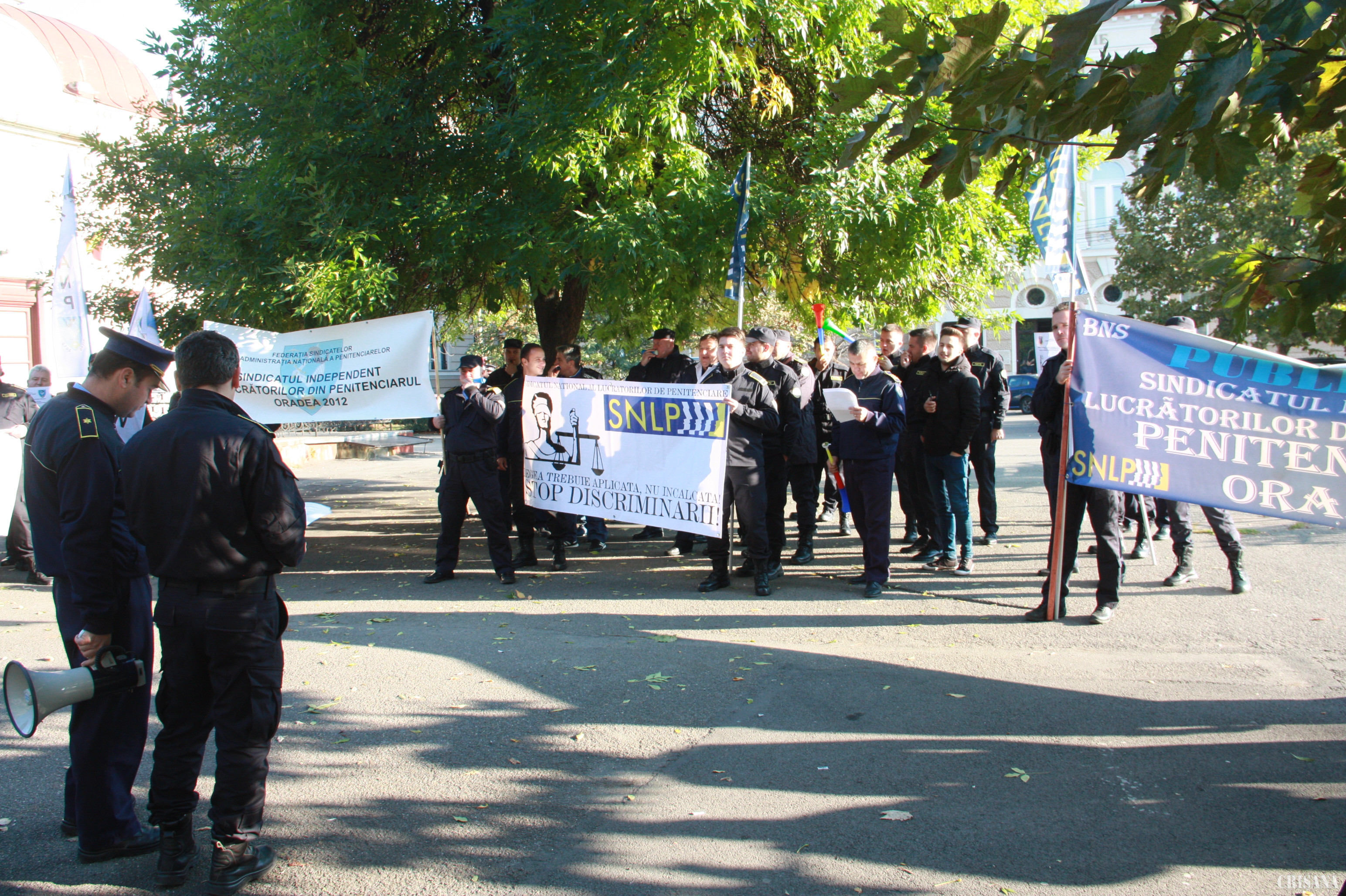 Angajaţii Penitenciarului Oradea au protestat timp de două ore, ieri, între orele 9.00 şi 11.00, în faţa Prefecturii Bihor. „Înarmaţi” cu pancarde şi vuvuzele, sindicaliştii şi-au manifestat nemulţumirea faţă de condiţiile în care muncesc, de numărul mare de ore suplimentare lucrate, dar neplătite şi faţă de neacordarea drepturilor salariale legale și discriminarea salarială față de ceilalți angajați din sistemul de apărare. „Cerem aplicarea Ordonanţei 20 din 2016 prin care suntem prevăzuţi la plata salariului de merit, cerem suplimentarea numărului de personal, dorim un dialog real cu doamna minstru Prună, pentru că de două luni ne tot jucăm. Nu avem un răspuns clar şi concret. Din această cauză am ieşit în stradă sau, cum s-ar spune, am dat jos deţinuţii de pe acoperişuri ca să ne urcăm noi în locul lor. Dorim plata salariilor de merit şi pentru penitenciare şi condiţii de muncă corespunzătoare”, a declarat Florin Silviu Ţirban, liderul orădean al Sindicatului Naţional al Lucrătorilor de Penitenciare. „Cerem să nu fim discriminaţi. Angajaţii din Penitenciare nu beneficiază de prevederile Ordonanţei 20, referitor la salariul de merit. Doamna Prună spune că suntem prea mulţi. Suntem puţini. Avem ore suplimentare, trebuie să acordăm drepturi deţinuţilor. Ne confruntăm cu o lipsă mare de personal. În acest moment avem colegi care lucrează pe secţii şi au un număr foarte mare de deţinuţi pe care îi gestionează. Avem colegi care stau în posturi de pază şi 12 ore, fără a fi schimbaţi, fără a putea servi masa sau fără a-şi putea satisface nevoile fiziologice. Sunt colegi în Penitenciarul Oradea care au efectuat un număr infim de zile de concediu, 7, 10. Nu au putut să se refacă. Implicit, creşte numărul de zile de concedii medicale. Există angajaţi care au peste 200 de ore suplimentare nerecompensate nici cu bani, nici cu timp liber”, a declarat Călin Ardelean, liderul Sindicatului Independent al Lucrătorilor din Penitenciarul Oradea. Angajaţii susţin că, în cazul în care revendicările lor nu vor fi luate în seamă, vor continua protestele, urmând să participe şi la un miting de amploare ce urmează a fi desfăşurat în Bucureşti. În Penitenciarul Oradea lucrează 220 de angajaţi, numărul deţinuţilor fiind de peste 600. „Suntem 220 de angajaţi şi peste 600 de deţinuţi. Conform noilor standarde, stabilite de Ministerul Justiţiei, ar trebui să fim 440 de angajaţi. Noi suntem, practic, la jumătate. Un agent din Penitenciarul Oradea are de gestionat un număr de 150, 200 de deţinuţi în regim de maximă siguranţă, închis sau deschis. Din cauza stresului şi a numărului de misiuni pe care le avem de executat se întâmplă şi rateuri, cum ar fi cele mai recente două cazuri de deţinuţi care au părăsit punctele de lucru”, a mai declarat Călin Ardelean. Ieri, liderii sindicaliştilor au depus un memoriu cu revendicările lor la Prefectura Bihor, urmând ca, în perioada următoare, dacă cererile lor nu vor fi soluţionate, să recurgă la alte proteste.