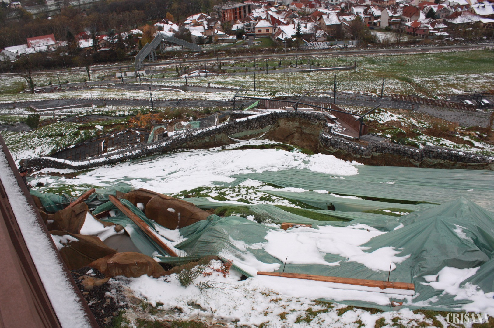 Aşa cum Crişana a relatat în ediţia de marţi, în dimineaţa zilei de 13 noiembrie 2016, pe Dealul Ciuperca s-a produs o alunecare de teren, care a afectat grădina publică amenajată aici anul trecut de către municipalitate. În vederea constatării situaţiei din teren, a fost constituită o comisie din care au făcut parte Marius Moş - director DMPFI Primăria Oradea, Daniel Tivadar - şef de proiect SC Poliart SRL, Marius Ionaşcu - director tehnic SC Abed Nego Com SRL, dirigintele de şantier Dănuţ Mureşan şi alţii. Comisia a stabilit că porţiunea cuprinsă între punctul de alimentaţie publică şi amfiteatru, destinată publicului vizitator, nu prezintă siguranţă şi stabilitate. Pentru evitarea producerii unor evenimente neplăcute care ar putea pune în pericol cetăţenii, s-a dispus închiderea accesului public pe întreg amplasamentul situat între punctul de alimentație publică şi pasarela peste drumul expres şi calea ferată. „În urma evaluării pagubelor din zonele în care s-au produs alunecările de teren, s-a stabilit că, din suprafaţa totală de 38.759 mp, au fost afectaţi cca 3.100 mp (mai puţin de 10%), iar din lungimea totală de 1.200 metri a aleilor, sunt afectaţi 165 de metri. De asemenea, un singur punct de belvedere din cele cinci a fost afectat de alunecarea de teren”, se precizează într-un comunicat de presă transmis marţi de Biroul de Presă al Primăriei Oradea. Municipalitatea a dispus recuperarea tuturor materialelor din zonele afectate: mobilier (bănci, coşuri de gunoi, corpuri de iluminat), elemente ale sistemului de irigaţie, plante etc., cea mai mare parte a acestora fiind în stare bună. Mai mult, s-a luat legătura cu Inspectoratul Teritorial în Construcţii şi cu Inspectoratul pentru Situaţii de Urgenţă, care au făcut mai multe verificări în teren. Pentru a putea pune la dispoziţia experţilor datele necesare, s-a dispus executarea unor forări de către geologi. „În zilele următoare, Primăria Municipiului Oradea va comanda efectuarea unei expertize tehnice de către un expert independent pentru stabilirea cauzelor alunecărilor de teren, a soluțiilor tehnice optime de remediere și de stabilizare a versantului. Se va solicita expertizarea atât a proiectului tehnic, cât şi a lucrărilor efectuate”, a declarat viceprimarul Mircea Mălan.