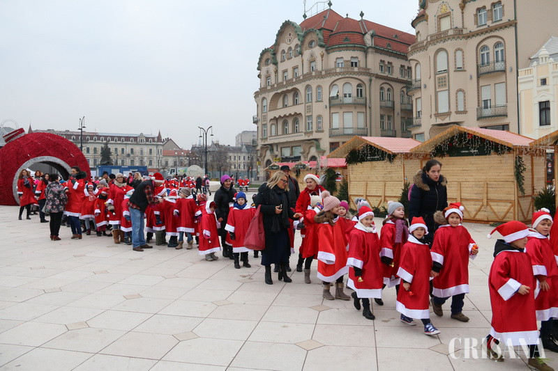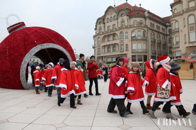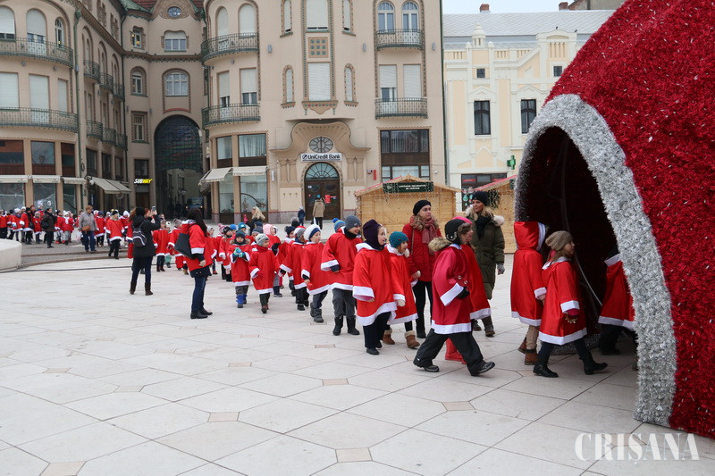 Peste 400 copii din clasele pregătitoare-IV de la Liceul Greco-Catolic „Iuliu Maniu” Oradea au pornit ieri la colindat prin centrul Oradiei, îmbrăcați în costume de Moș, pentru a aduce o bucurie în sufletele trecătorilor.