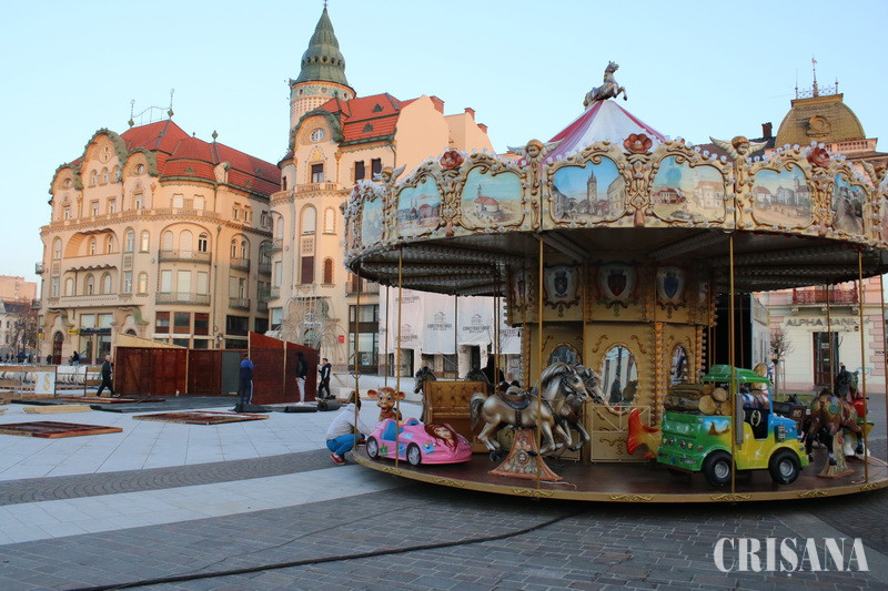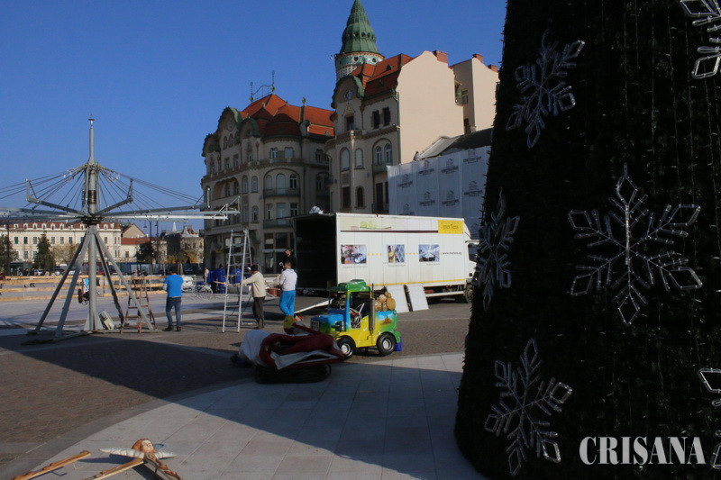Târg de Crăciun în Piața Unirii din Oradea - A început amenajarea patinoarului