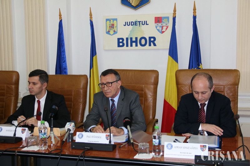 Joi, în sala de şedinţe a Consiliului Judeţean Bihor, a avut loc semnarea contractelor de finanţare pentru patru proiecte derulate de Consiliul Judeţean Bihor. La eveniment au fost prezenţi vicepremierul Paul Stănescu, ministru al dezvoltării regionale, ministrul delegat pentru Fonduri Europene, Marius Nica, şi secretarul de stat în Ministerul Dezvoltării Regionale, Adrian Gâdea, responsabil cu Programul Naţional de Dezvoltare Locală. De asemenea, din partea judeţului Bihor au fost prezenţi atât preşedintele CJ Pasztor Sandor, cât şi cei doi vicepreşedinţi, Ioan Mang şi Traian Bodea. „Este o zi foarte importantă pentru judeţul Bihor. Vom semna contractele cu cele mai mari sume de investiţii pentru infrastructura judeţului Bihor”, a anunţat Pasztor Sandor, menţionând că două dintre cele patru proiecte vor fi finanţate prin Programul Operaţional Regional 2014-2020, iar celelalte două prin PNDL, etapa a doua. Primul proiect pentru care s-a semnat contractul de finanţare a fost etapa a doua a reabilitării sediului Muzeului Ţării Crişurilor. Proiectul, în valoare totală de 5,5 milioane euro presupune lucrări de amenajare și dotări interioare pentru clădirea monument istoric în care este adăpostit MTC (etajul I – secţia Ştiinţele naturii şi secţia de Istorie). De asemenea, în cadrul acestei investiții se vor realiza și lucrări de amenajare a spațiului public aferent curții muzeului, în suprafață de 20.800 mp, reabilitarea porții principale de acces (parte integrantă din monumentul istoric), curățarea terenului și amenajarea spațiului verde, construirea unui amfiteatru, amenajarea unui spațiu de așteptare, repararea fântânii după intervențiile aferente proiectului, pavarea aleilor (inclusiv montarea de benzi tactile pentru nevăzători), parcări, repararea și completarea împrejmuirii, restaurarea cabinei de pază, realizarea unui sistem de iluminat arhitectural precum și montarea de mobilier urban. Termenul pentru acest proiect este de trei ani de la semnarea contractului de execuţie, însă Pasztor Sandor speră că lucrările vor fi finalizate mult mai repede. „La Muzeu mai avem o etapă de reabilitare - proiectul strategic la care lucrăm cu Debreţin. Avem toate datele să terminăm mult mai repede lucrările. Cum terminăm un etaj, cum îl dăm în folosinţă”, a menţionat preşedintele CJ Bihor.