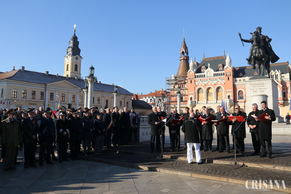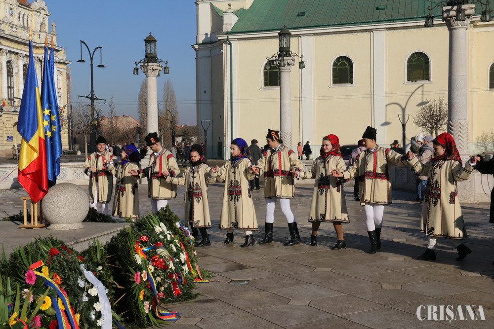 Evenimentul a început cu prezentarea onorului, salutul drapelului de luptă și intonarea imnului de stat al României de către Bianca Diana Popa, elevă la Liceul de Arte Oradea, Secția Canto popular. Evenimentul a continuat cu o slujbă Te Deum oficiată de preoții din structurile Sistemului Național de Securitate din cadrul Garnizoanei Oradea. Prefectul județului Bihor, Dumitru Țiplea a transmis mesajul primului-ministru al României Ludovic Orban, cu ocazia manifestărilor prilejuite de aniversarea a 161 de ani de la Unirea Principatelor Române. În continuare, prof. univ. dr. în istorie Gabriel Moisa a trecut în revistă contextul istoric, semnificația momentului de la 24 ianuarie 1859, dar și meritele de necontestat ale unei generații politice de excepție, care a știut ce să facă cu puterea politică pe care a deținut-o și care a construit ceea ce noi avem astăzi. "Faptul că marcăm pe tot teritoriul României ziua de 24 ianuarie 1859 este un lucru mai mult decât benefic pentru noi ca națiune. Momentul 24 ianuarie 1859 este un moment deosebit de important pentru istoria poporul nostru, este unul din acele momente esențiale care alături de alte momente istorice precum unirea sub Mihai Viteazu, Revoluția lui Tudor Vladimirescu, 1 Decembrie 1918, și de ce nu, Revoluția din decembrie 1989, ne definesc ca popor și ne adună mereu la un loc indiferent de opțiunile noastre culturale, ideologice sau de altă natură", a spus prof. univ. dr. în istorie Gabriel Moisa. În continuare a urmat un frumos recital de cântece patriotice susținut de Corul General Traian Moșoiu, după care a avut loc festivitatea depunerii de coroane și jerbe de flori. Festivitățile s-au încheiat cu defilarea detașamentului de onoare, onorul muzicii militare și „Hora Unirii", în care s-au prins mai mulți participanți la ceremonie, alături de dansatorii profesioniști de la Ansamblul Folcloric Bihorul.